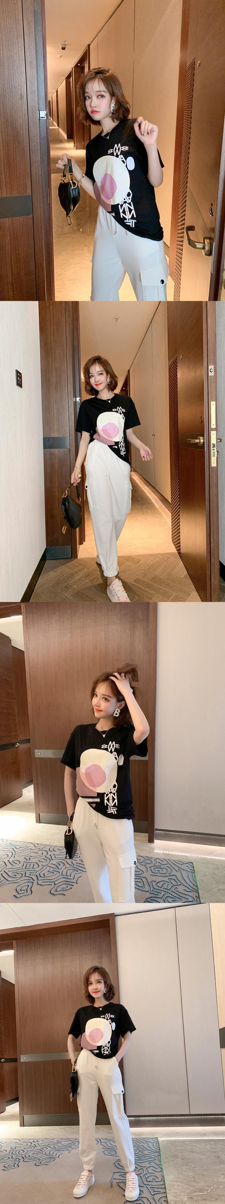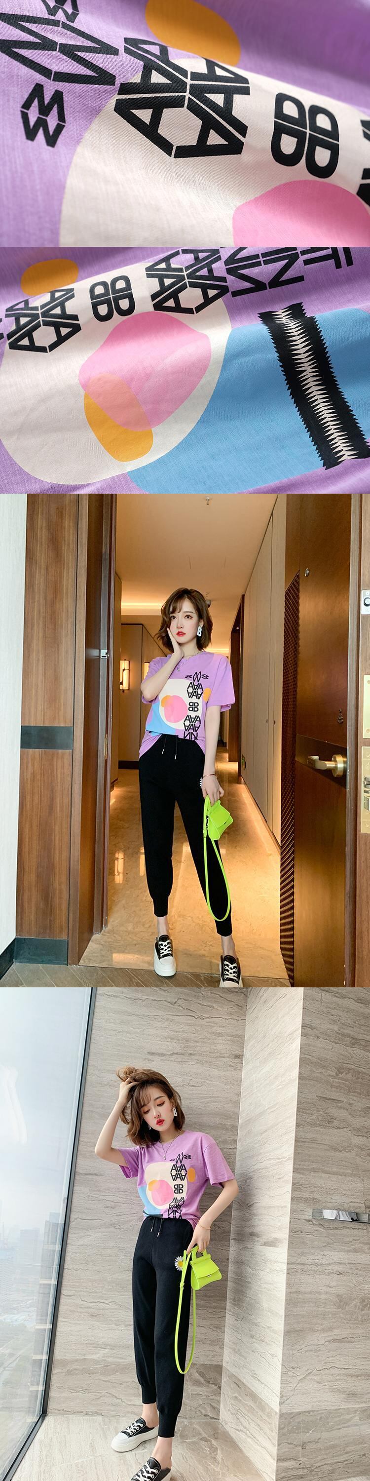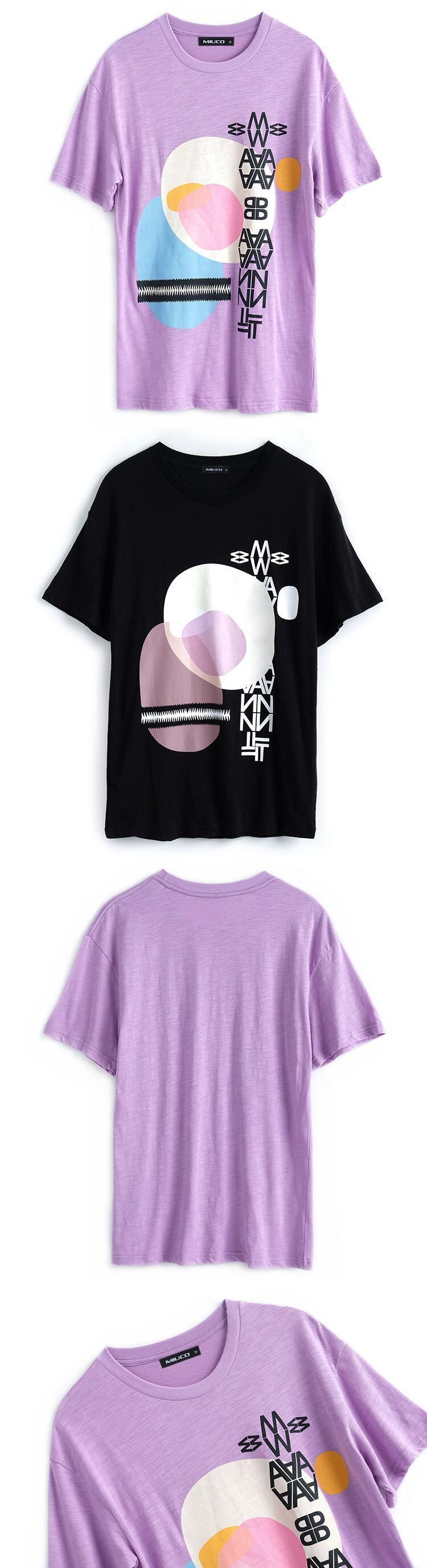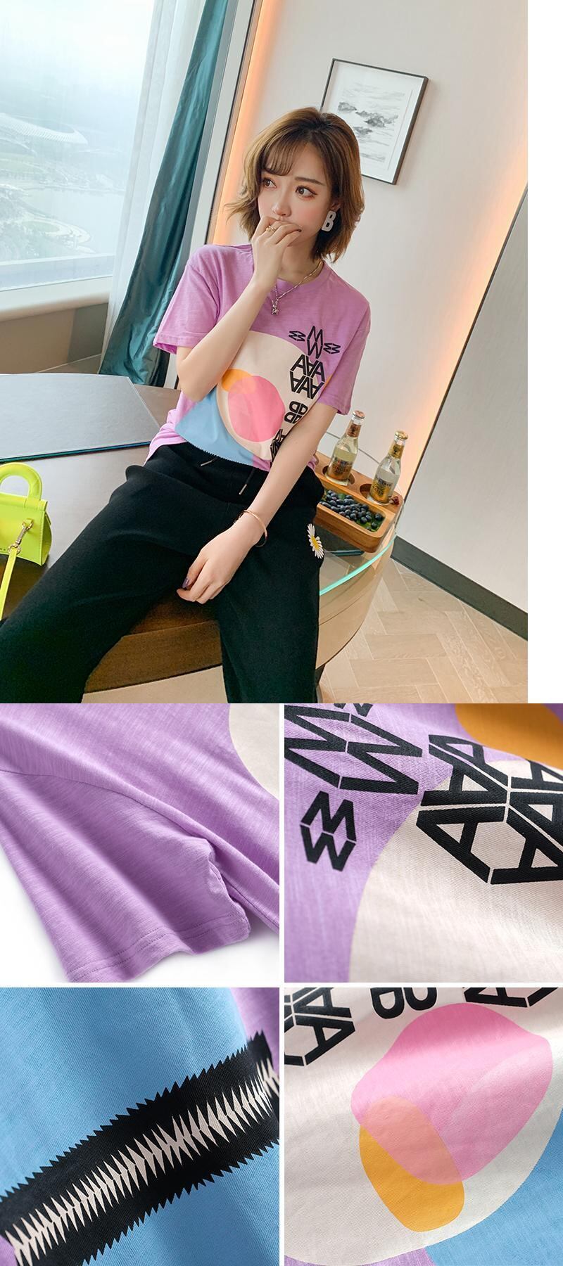 カラーブロックプリントルーズラウンドネックTシャツ スプリング 春物 Oネック MIUCO49440924275