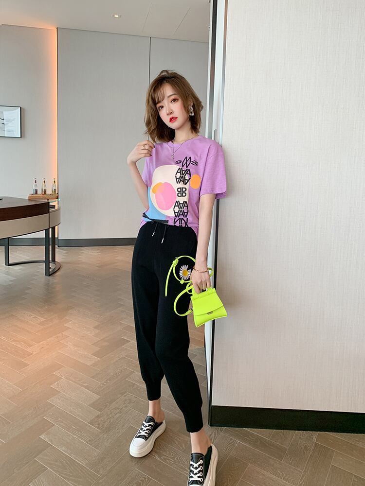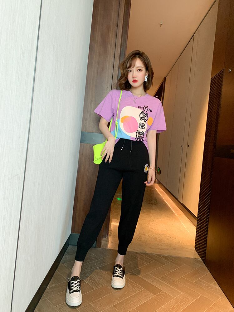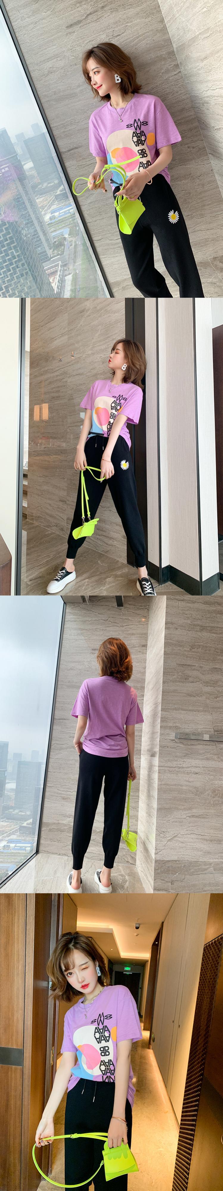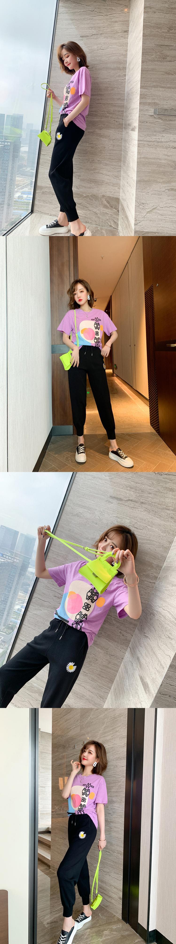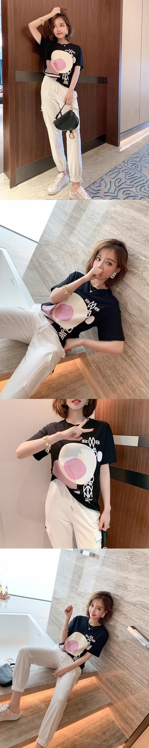 カラーブロックプリントルーズラウンドネックTシャツ スプリング 春物 Oネック MIUCO49440924275