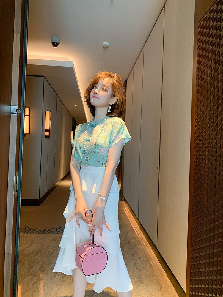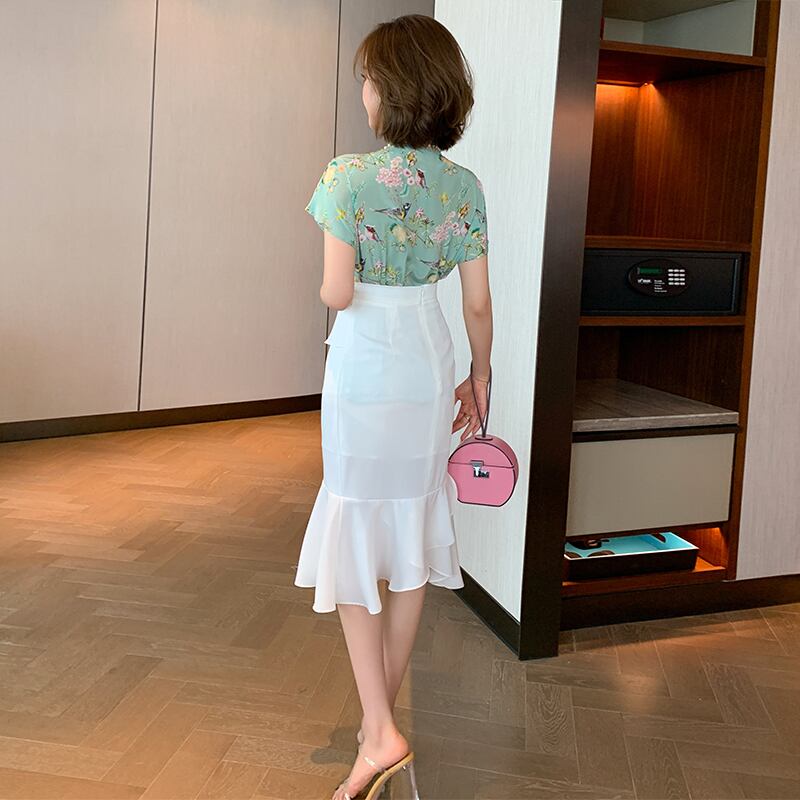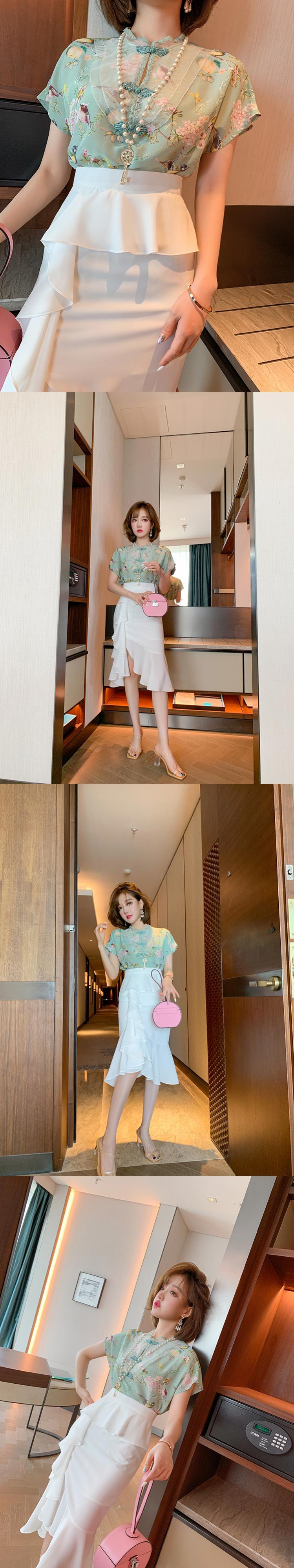 スタイルFlowerデザイン プリントバックルメッシュシャツ サマー 夏物 フラワーデザイン ステッチ MIUCO37561722408