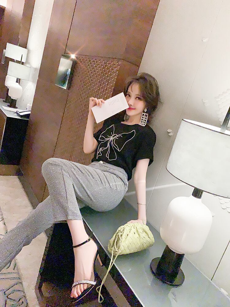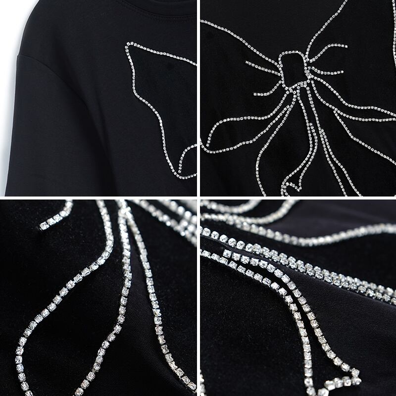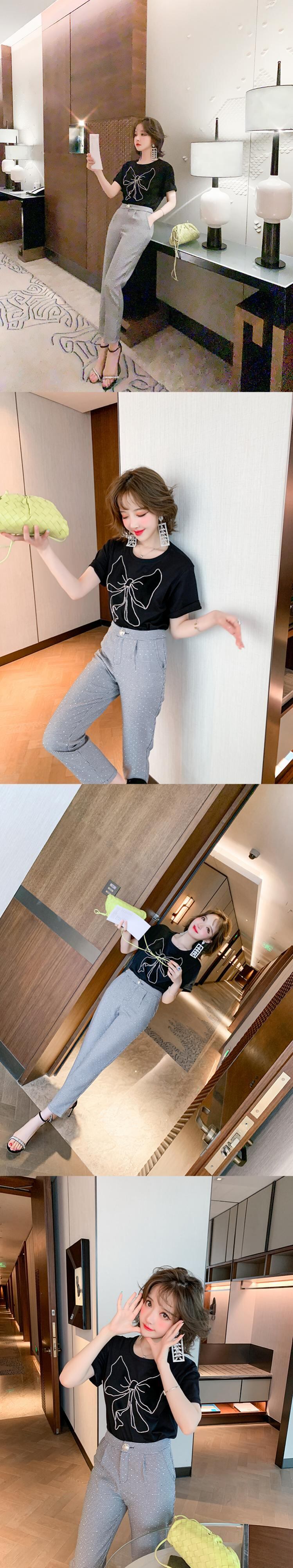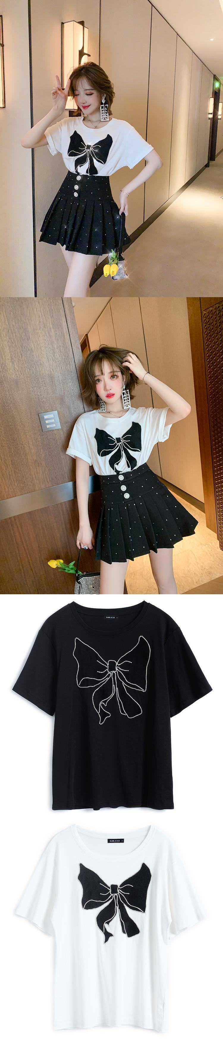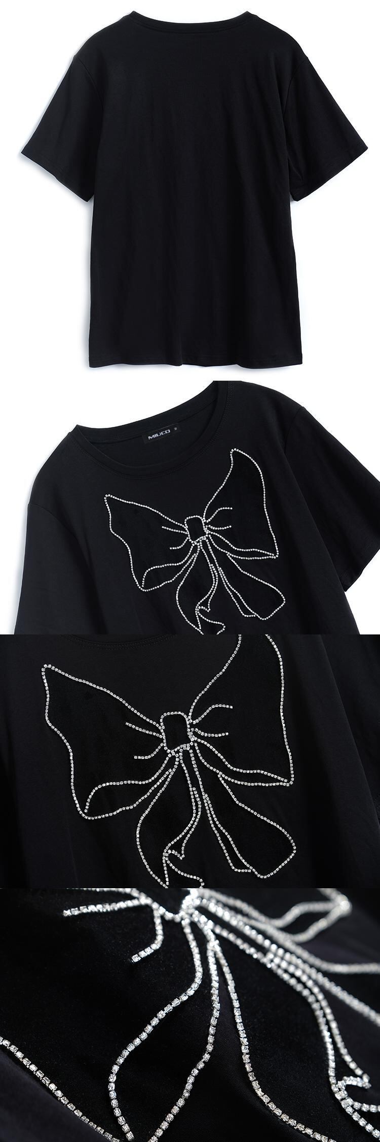 リボンカジュアルラウンドネックTシャツ トップス レディースサマースタイル 夏物 Oネック MIUCO84224800746