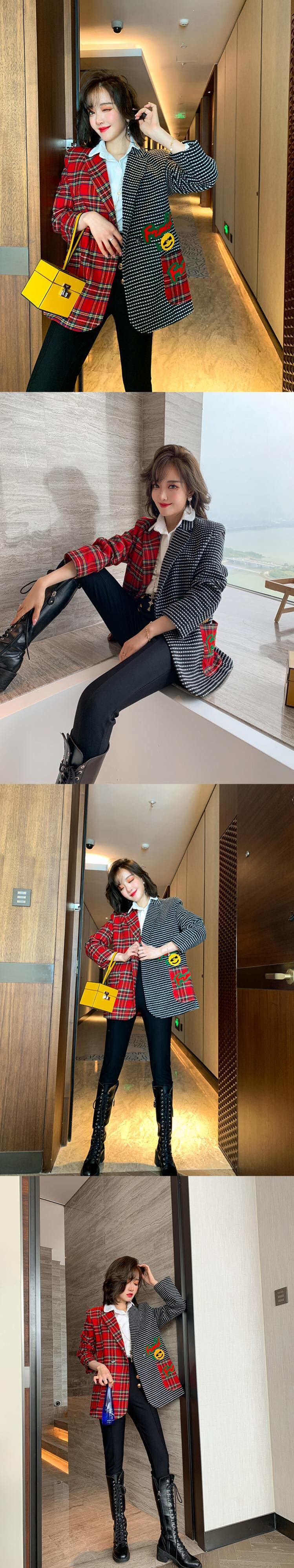 水玉ポケットジャケット スプリングオータム レッド 春物 秋物 ステッチ MIUCO75832317277