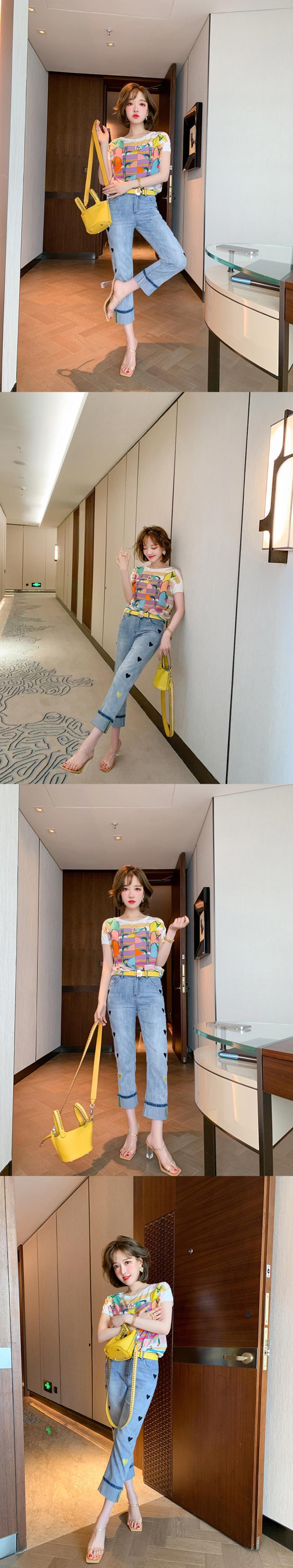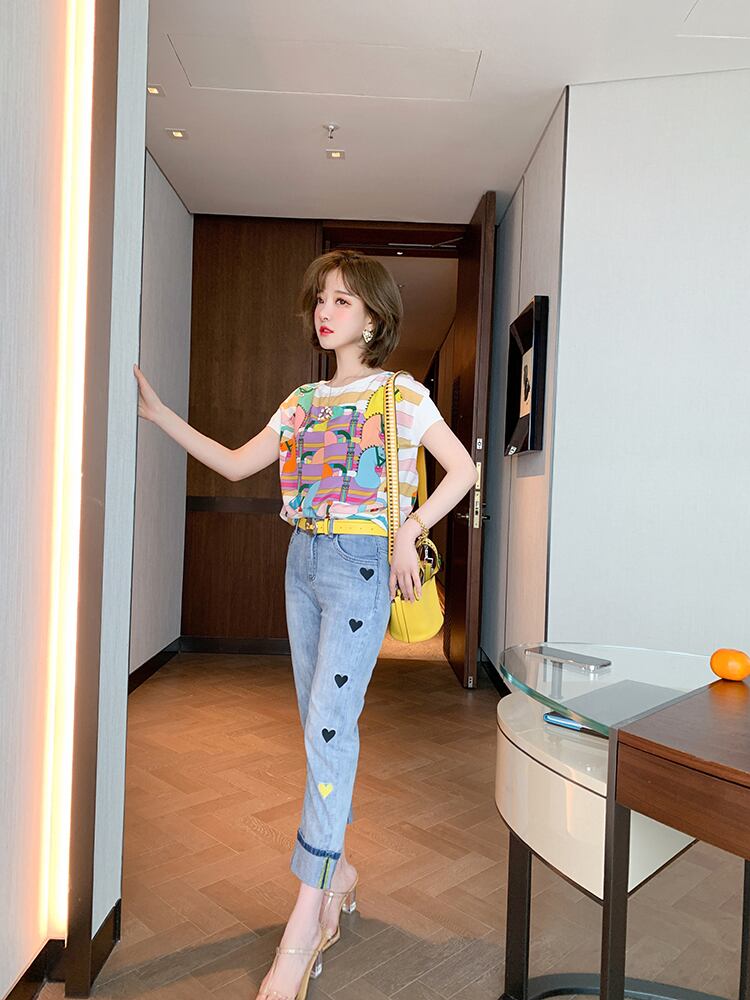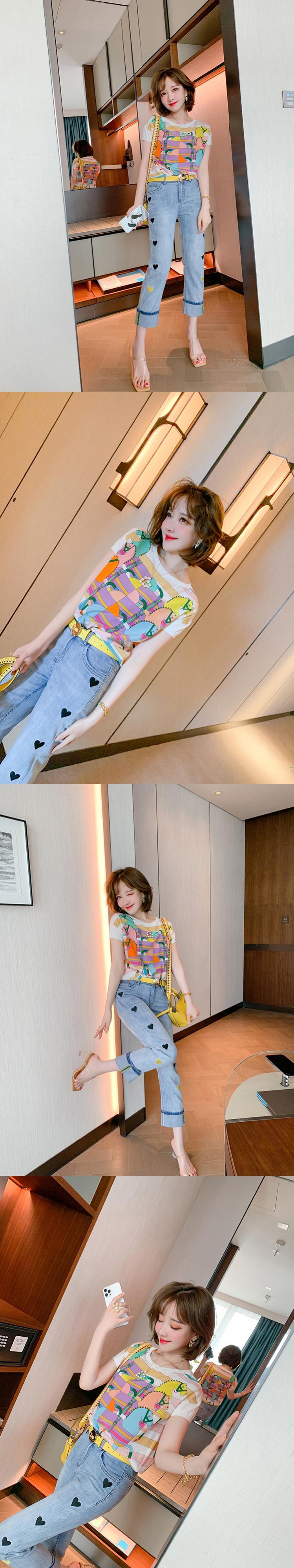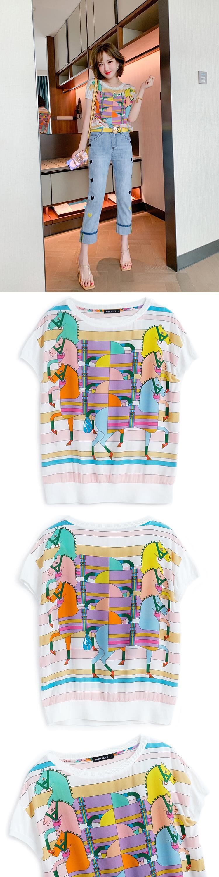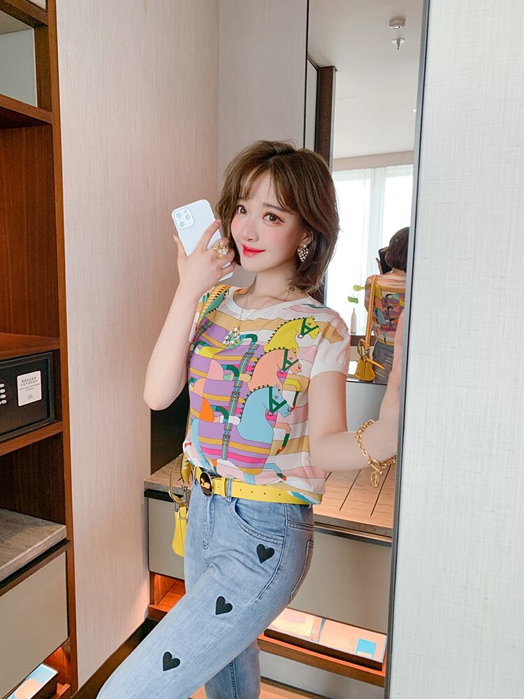 プリントラウンドネック半袖スリーブTシャツ スプリングサマー ショート ハーフスリーブ 春物 夏物 Oネック MIUCO85511564182