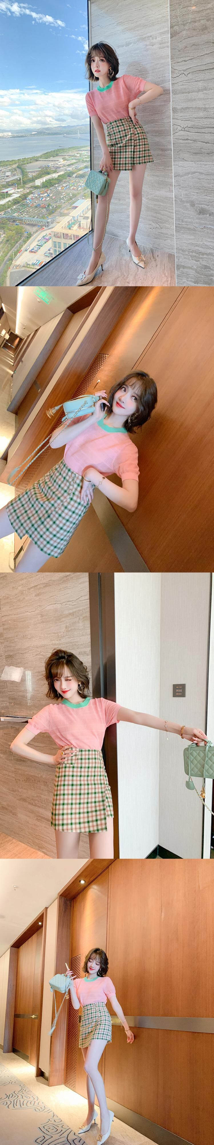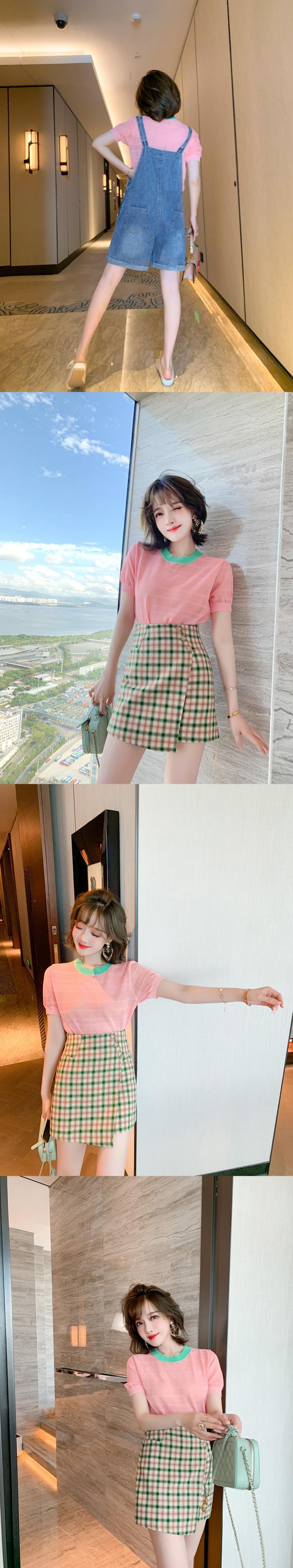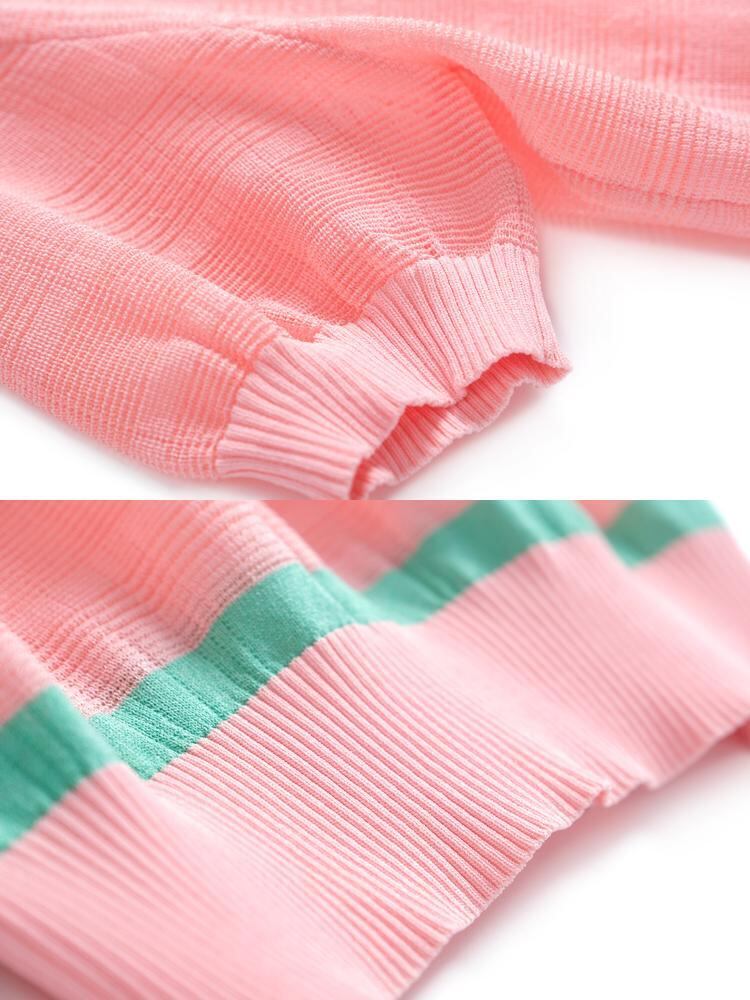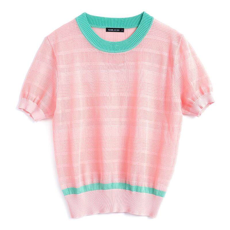 ラウンドネックストライプジャカードニット半袖スリーブTシャツ サマー ショート ハーフスリーブ 夏物 Oネック MIUCO71288388181