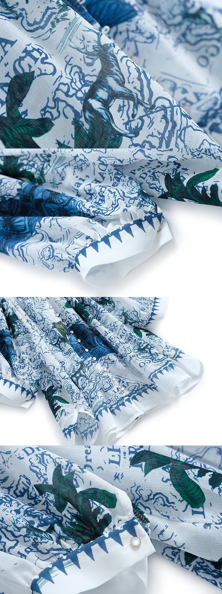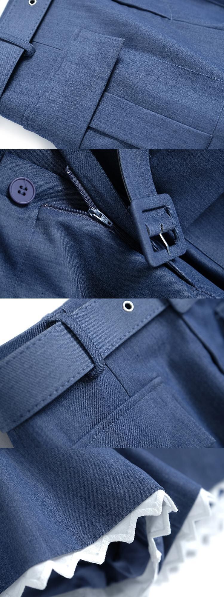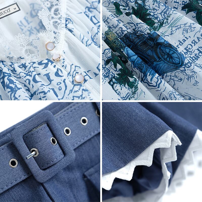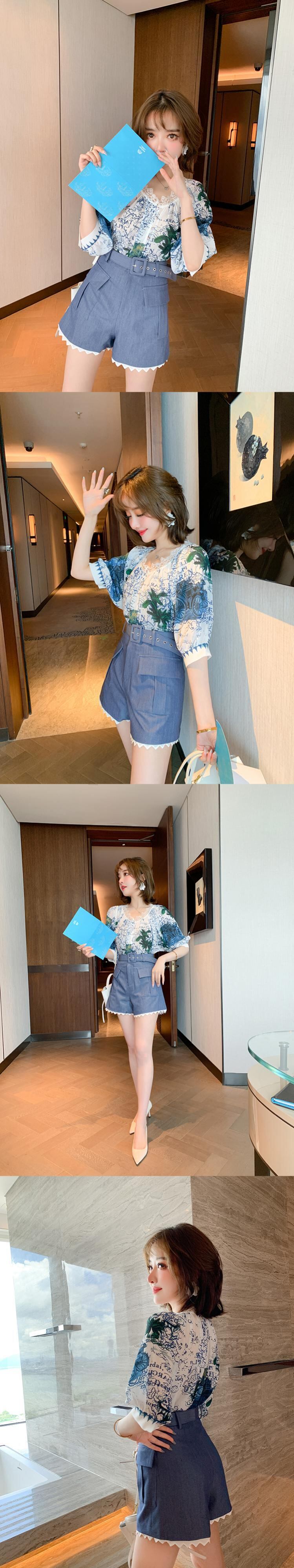 プリントプリーツシャツ レースハイウェストウェストショーツ レッド レトロ 刺繍 ブルマー MIUCO45975915380