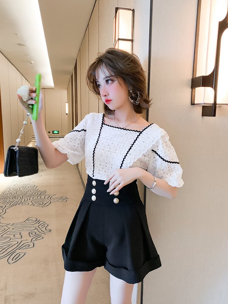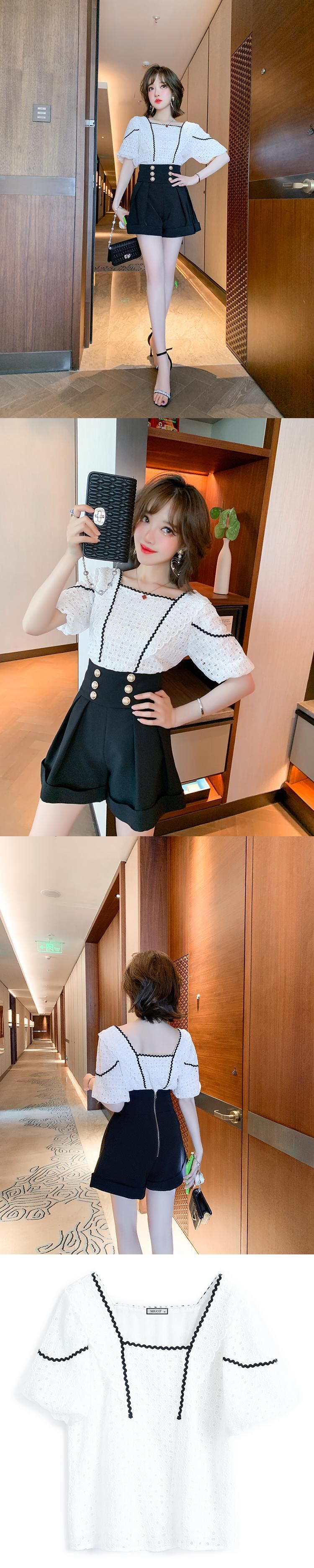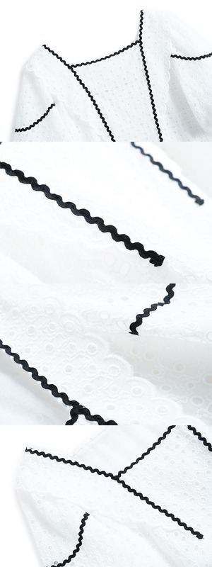 刺繍カラーソリッド ブラウス サマー 夏物 ソリッドカラー スクウェア MIUCO15972611145