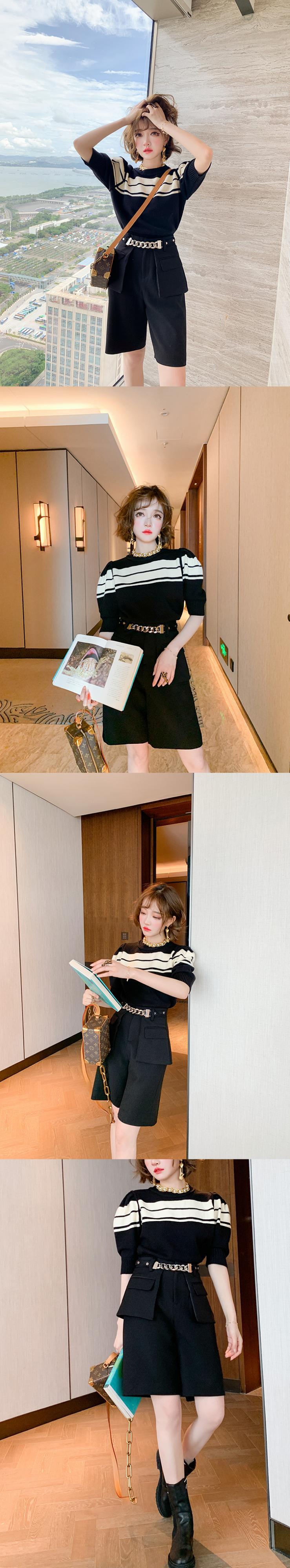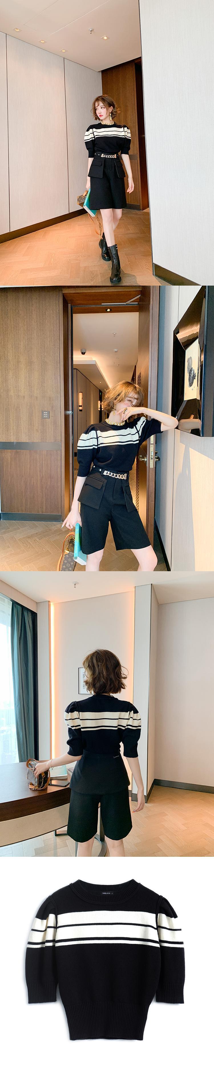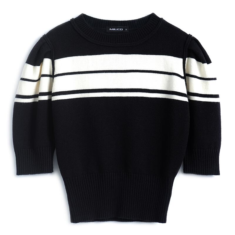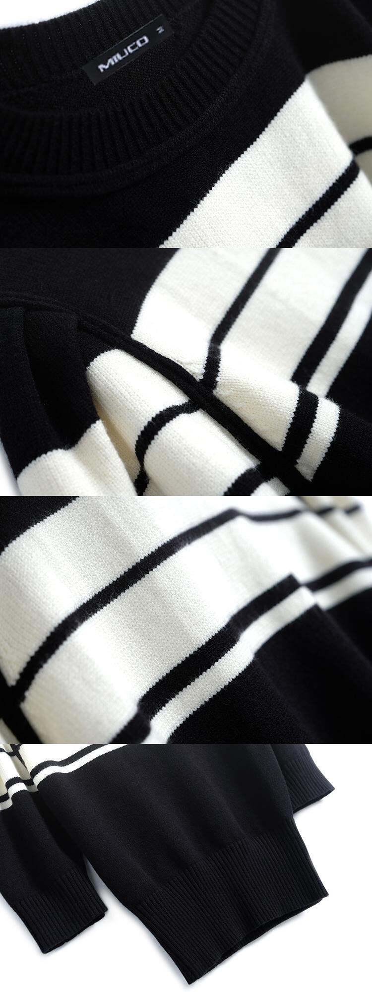 カジュアルカラーストライプスリーブウェストラウンドネックセーター レディースオータムスタイル 秋物 Oネック MIUCO61492416076