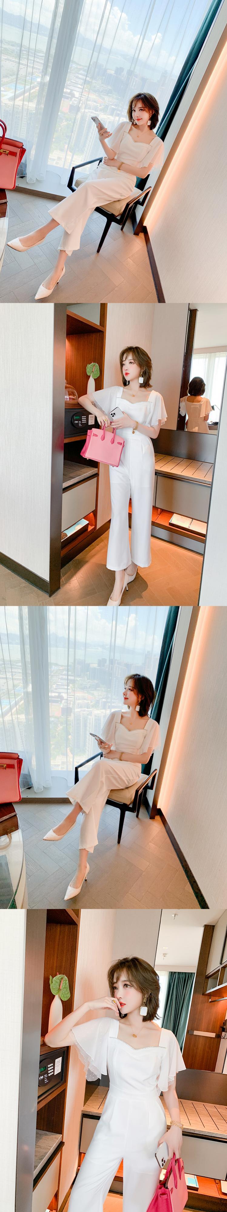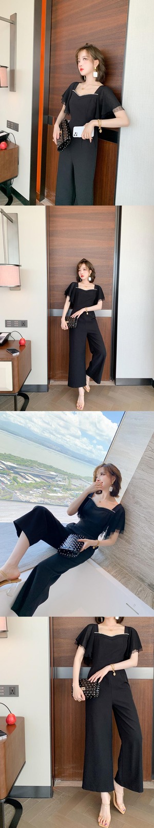 カラーウェスト薄手ジャンプスーツ オールインワン スプリングサマー 春物 夏物 スクウェア ステッチ MIUCO53590757116