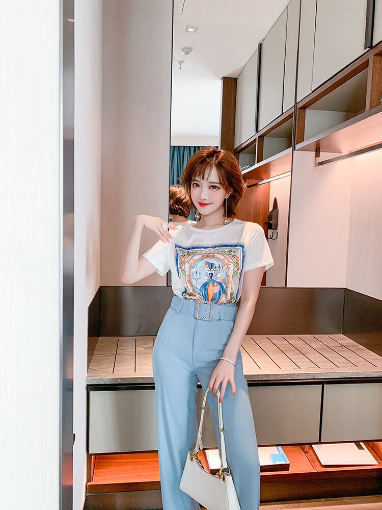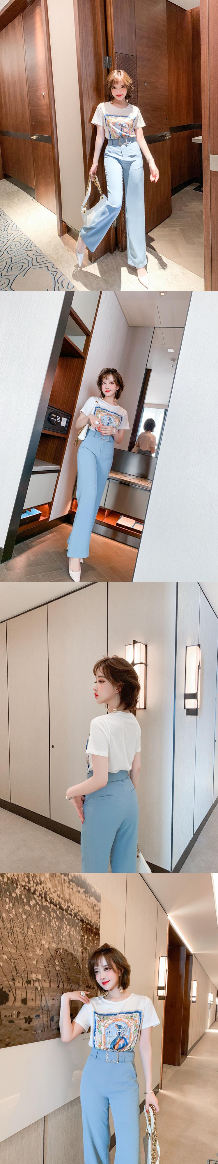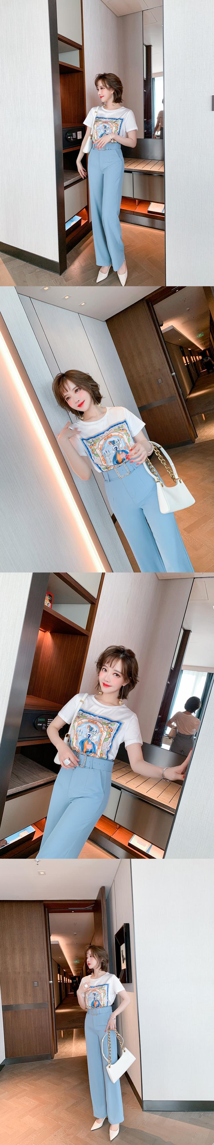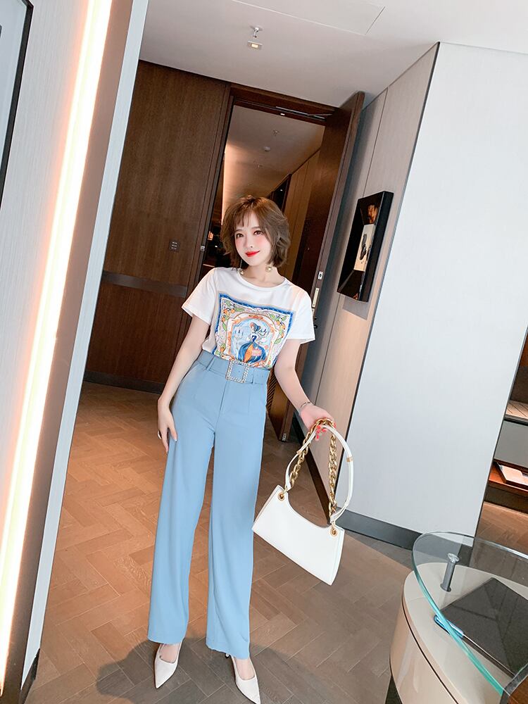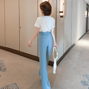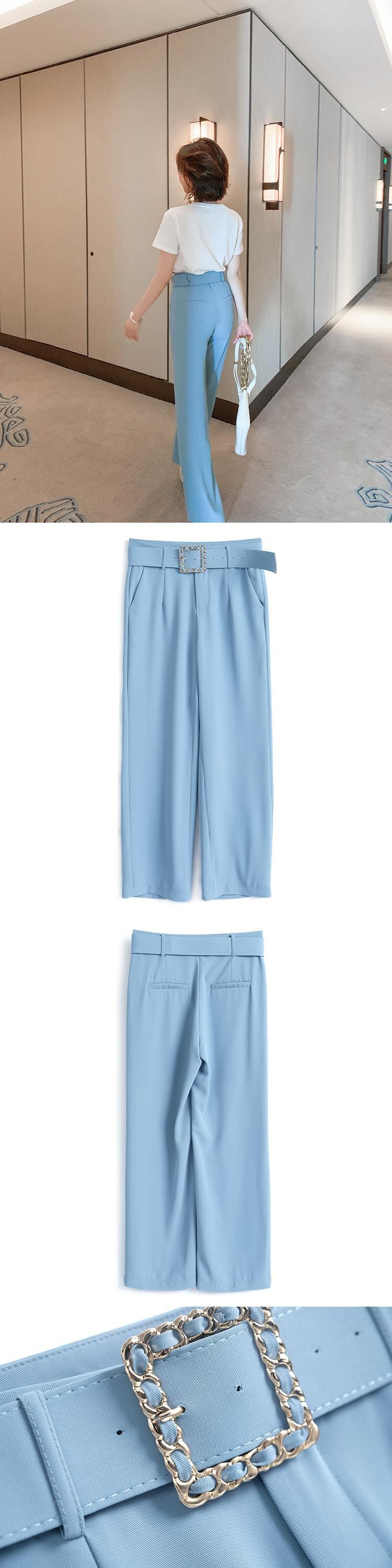 ベルト ハイウェストウェスト薄手ソリッド カラーパンツ スプリング 春物 ハーネス ソリッドカラー MIUCO60542124142
