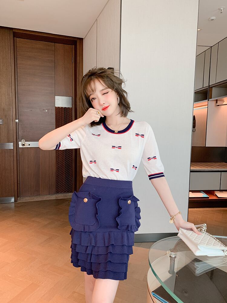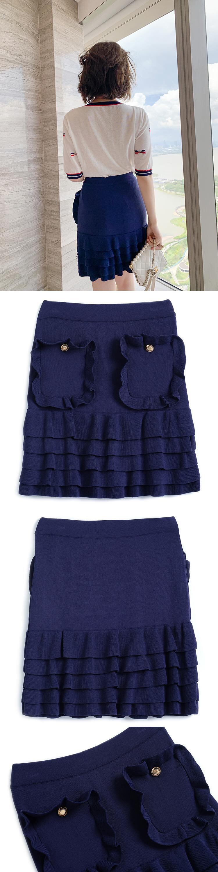 ハイウェストウェストスリムレースポケットソリッド カラースカート サマー 夏物 ソリッドカラー MIUCO97035618207