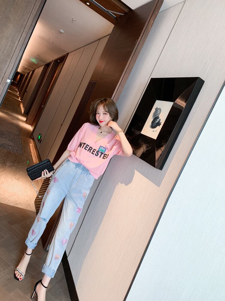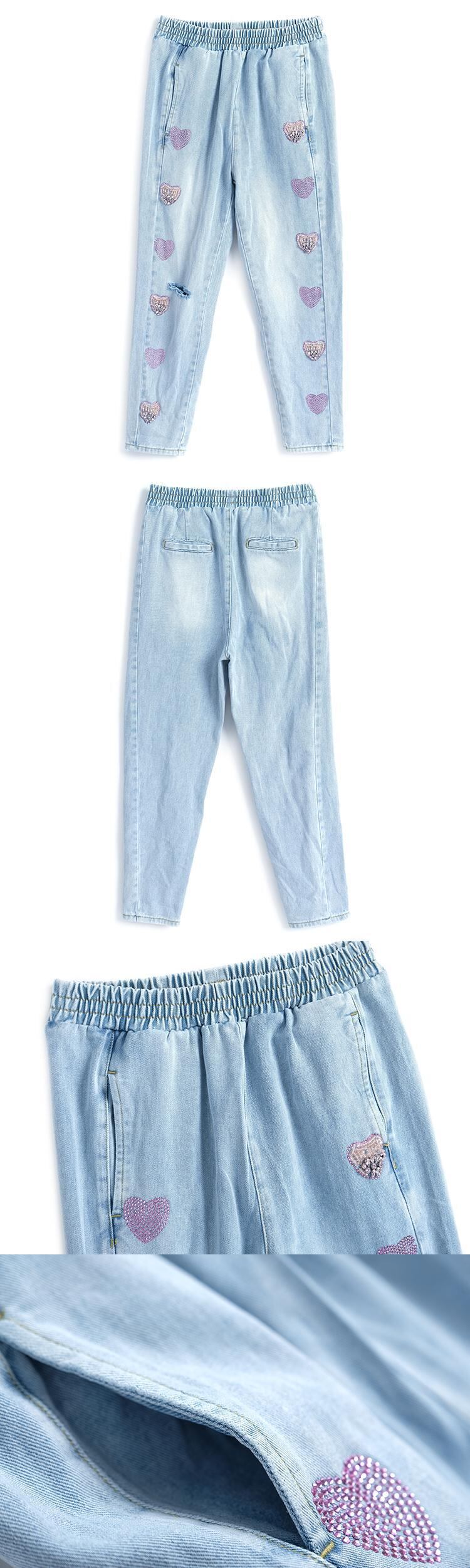 ストレッチハイウェストウェストカラー薄手ジーンズ スプリングサマー エラスティック 伸縮 春物 夏物 MIUCO27147031676
