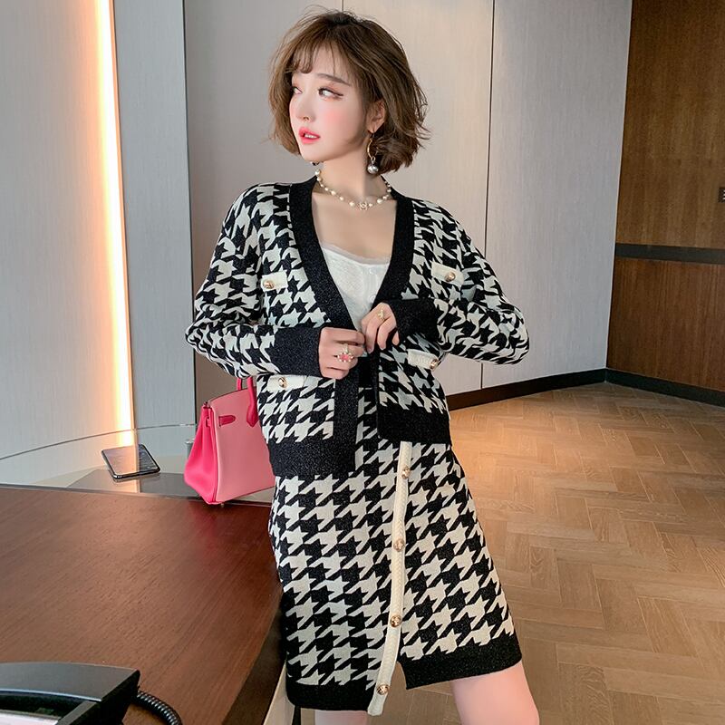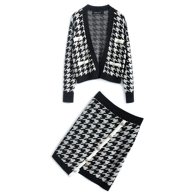 カラーVネックニットカーディガンウェストスリムスカート MIUCO46921411832