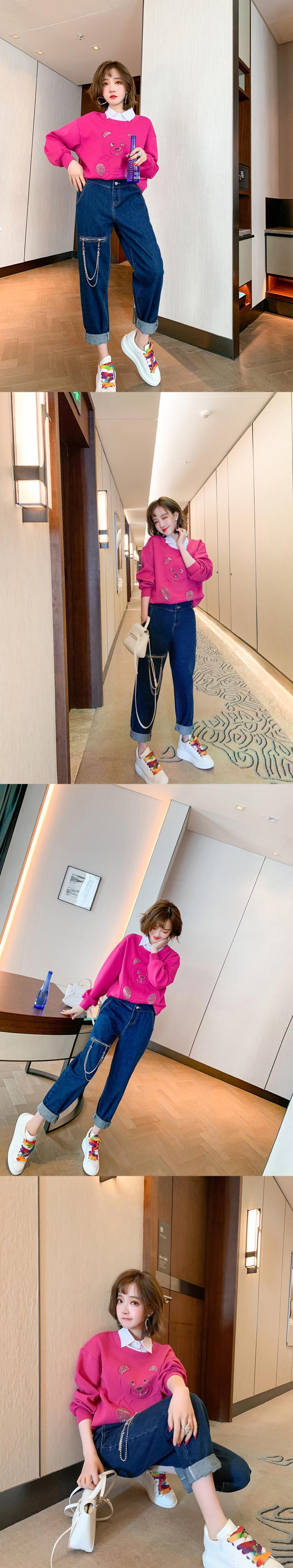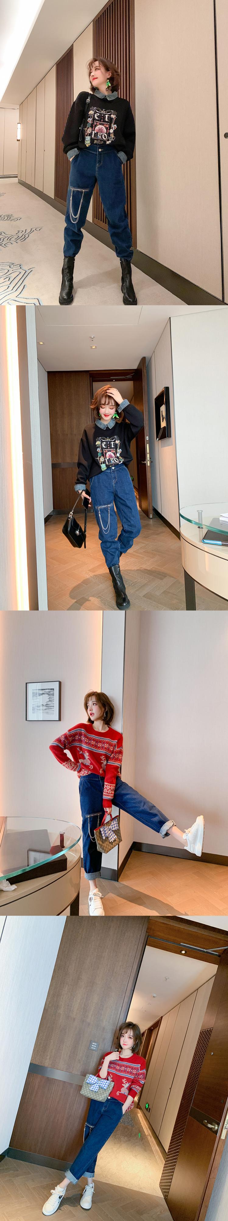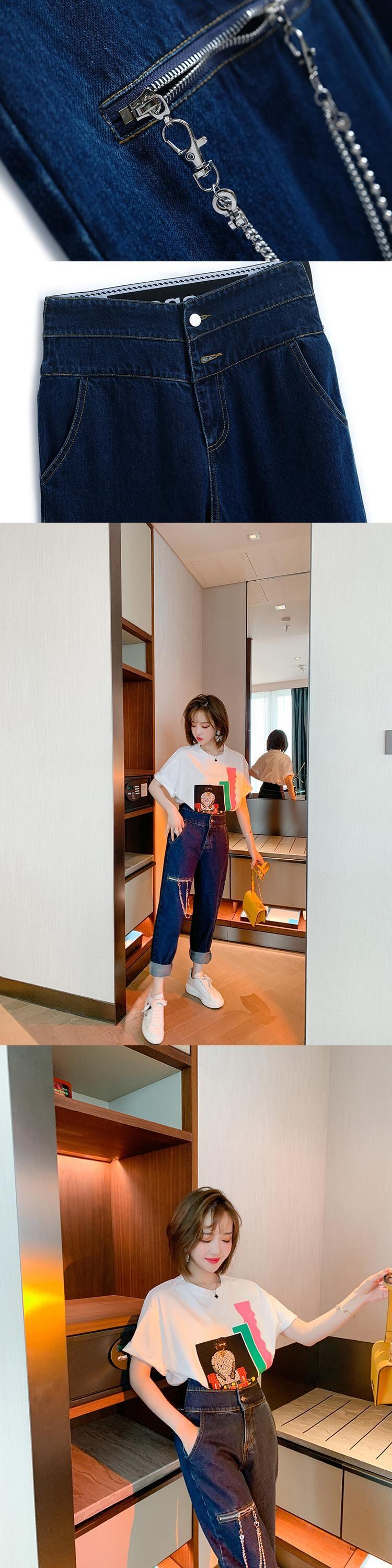 ダブルウェストチェーン ジッパールーズパンツ ジーンズ オータム レッド 秋物 MIUCO55762747800