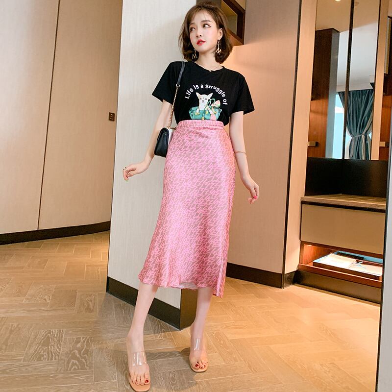 カラープリント柄ウェストスリムスカート サマー 夏物 MIUCO58424037252