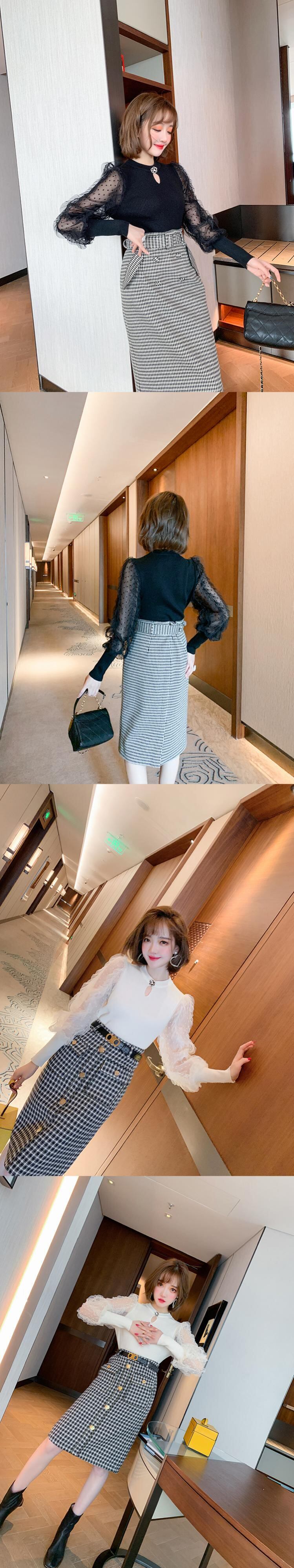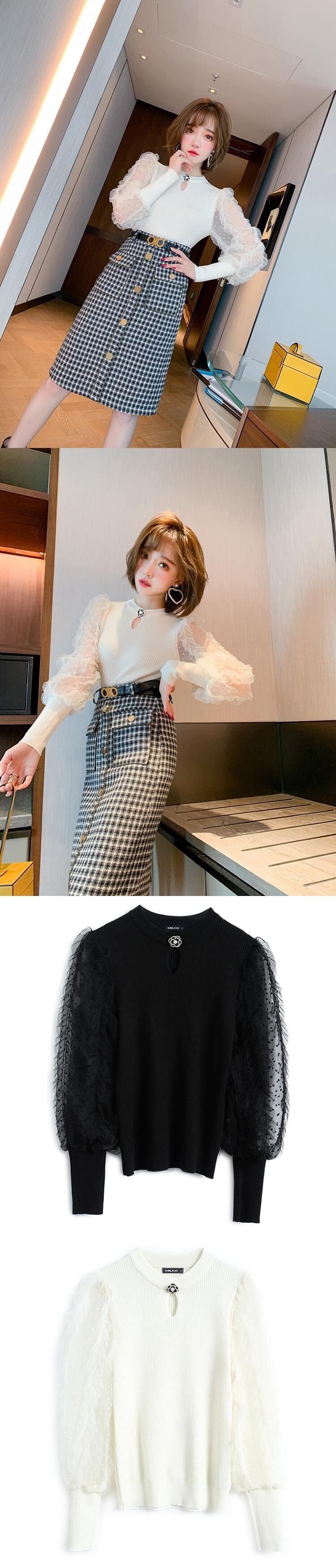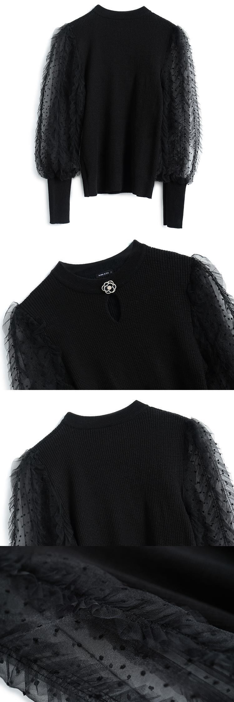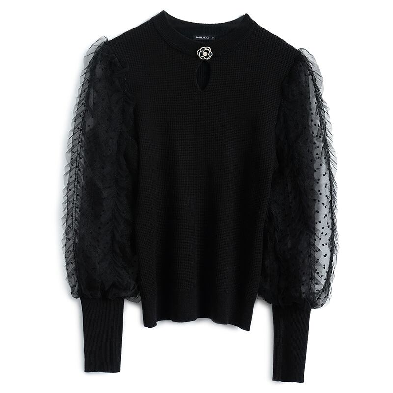 メッシュスリーブスリムニットトップス ウィンター 冬物 MIUCO54977029448