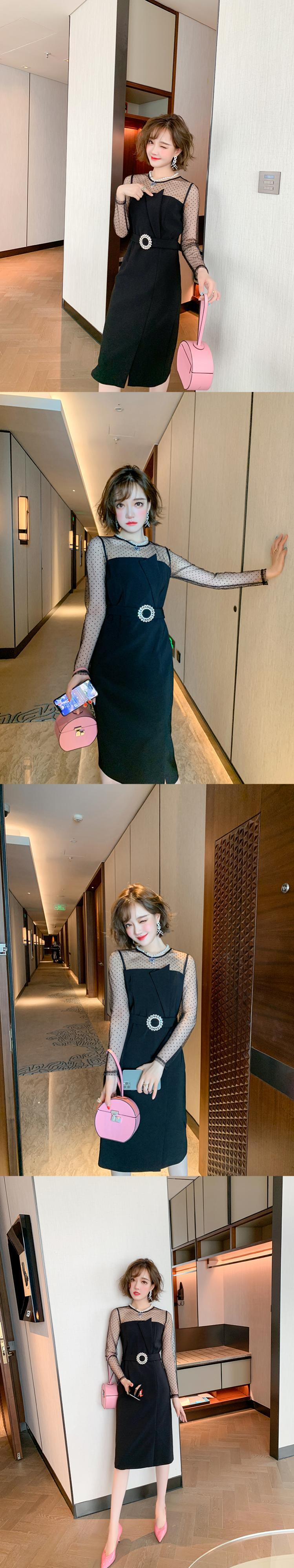 水玉メッシュトップス ウェストドレス オータム 秋物 ステッチ MIUCO3347226612