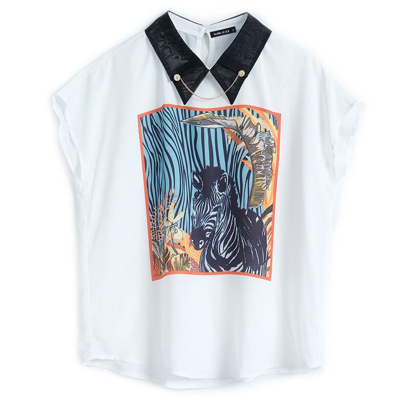 プリント柄カラーチェーン スリーブシャツ サマースタイル 夏物 MIUCO65351873941