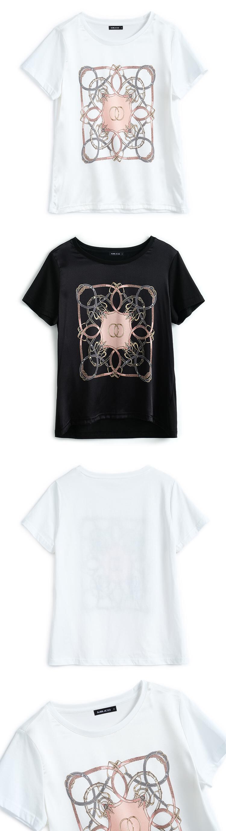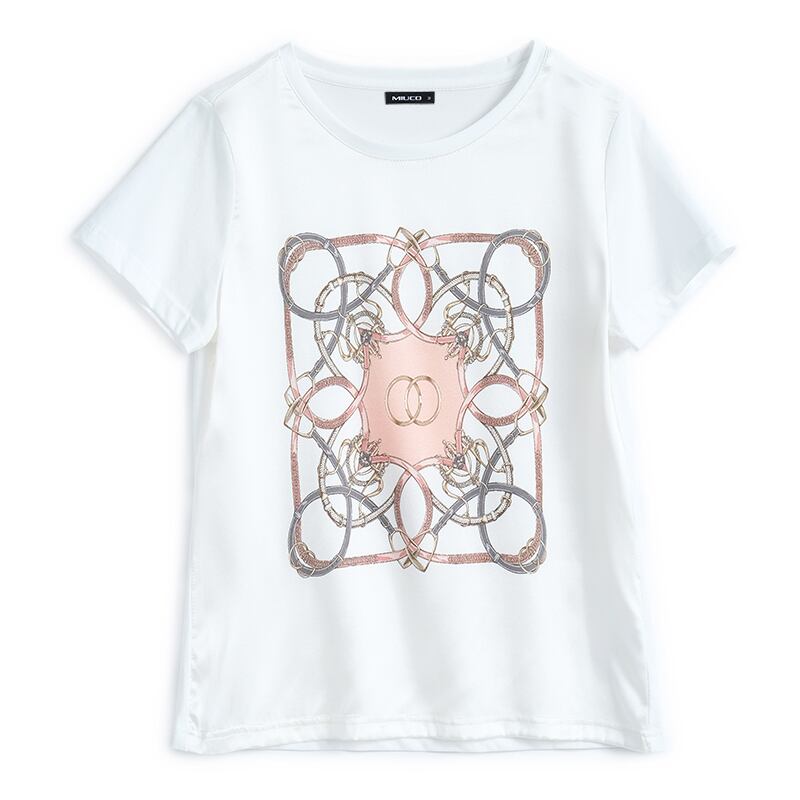 プリントラウンドネックプルオーバー Tシャツ サマースタイル 夏物 Oネック MIUCO58326662531