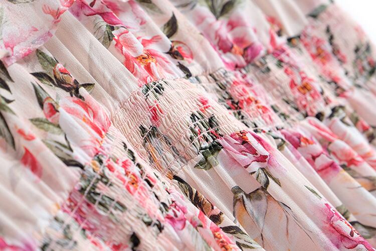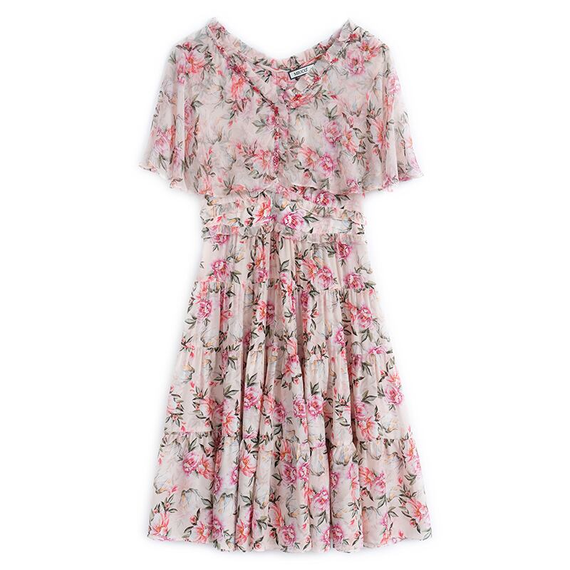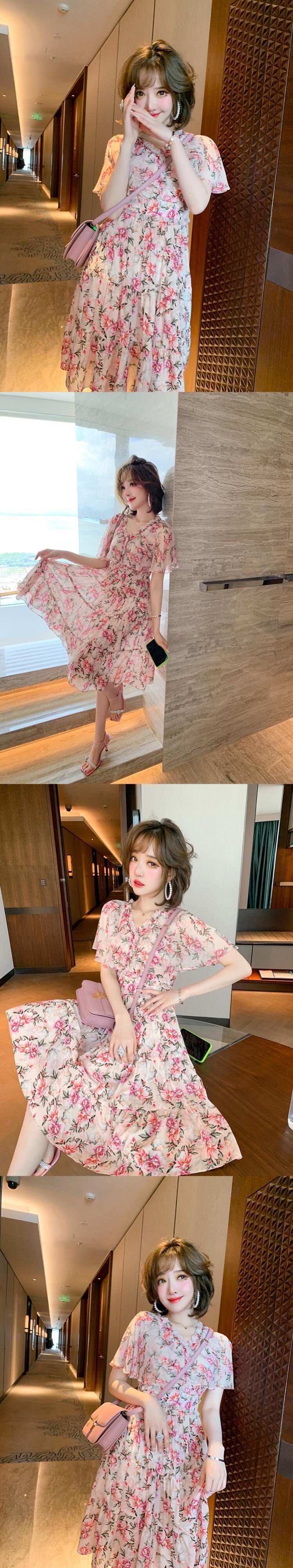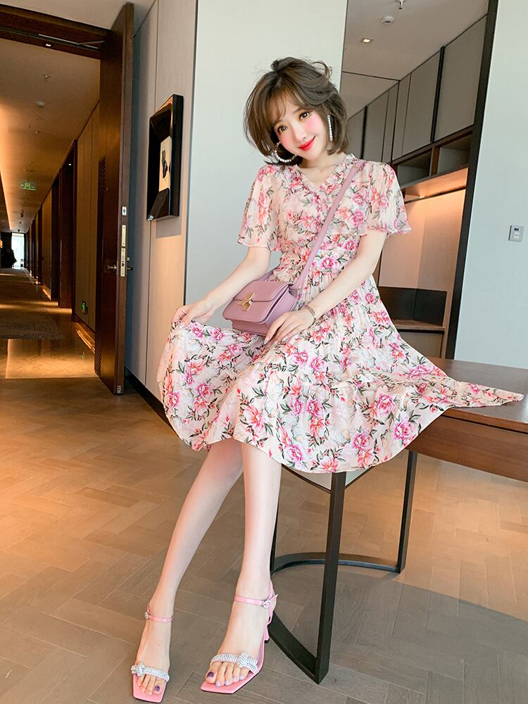 Vネックウェスト薄手プリントドレス サマー 夏物 ステッチ MIUCO60450116938