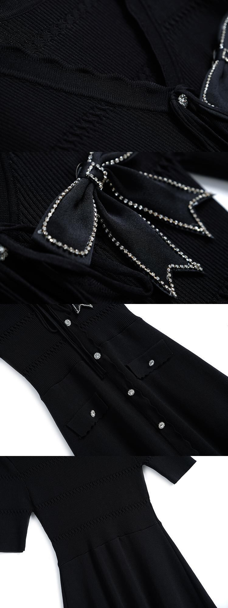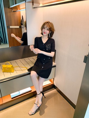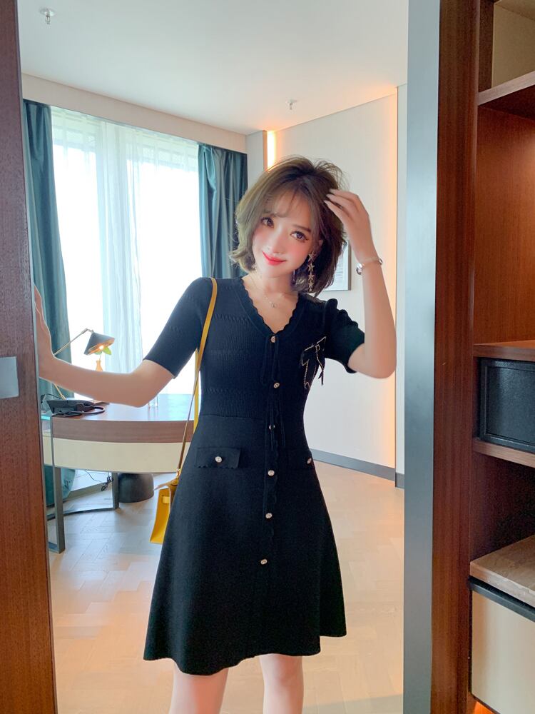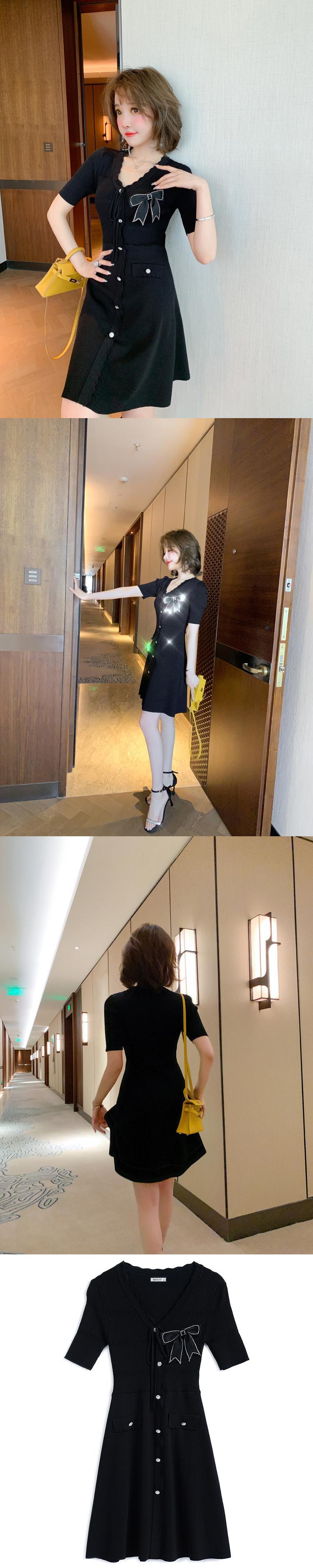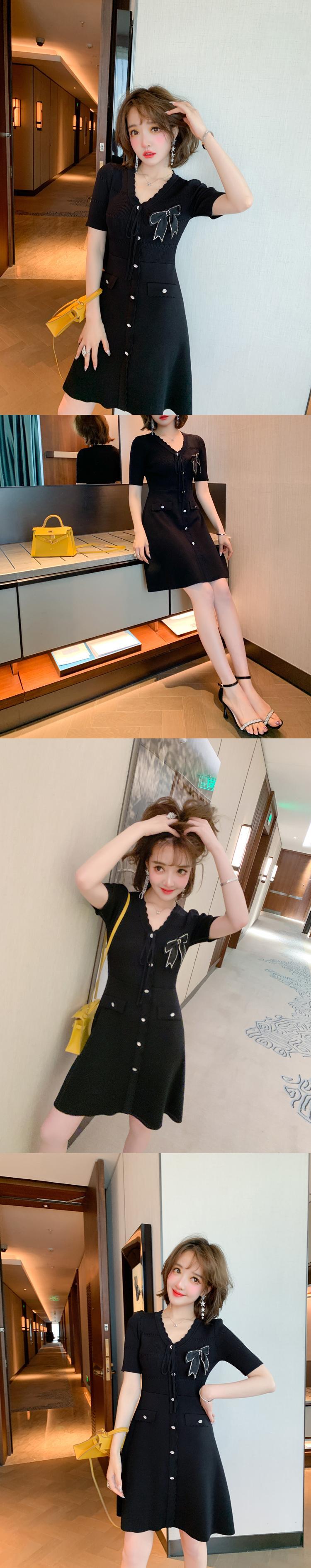 ブラックドレス ウェストスリムニットサマー リボン 夏物 MIUCO54688169486