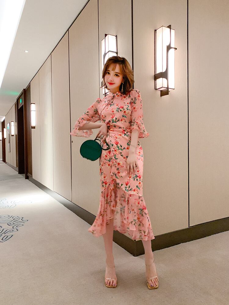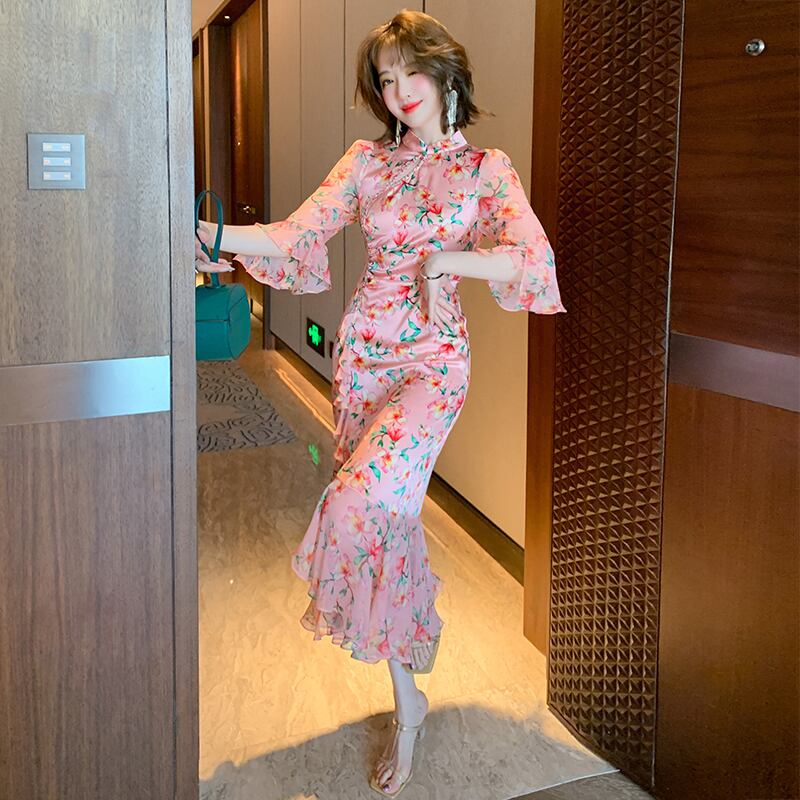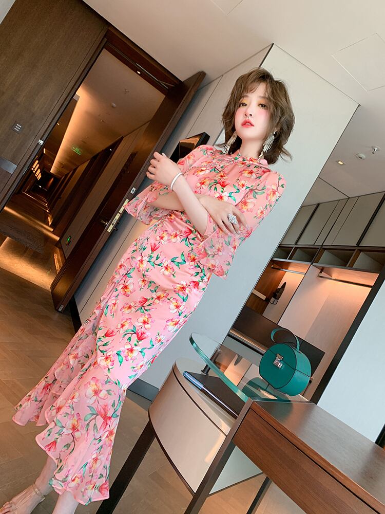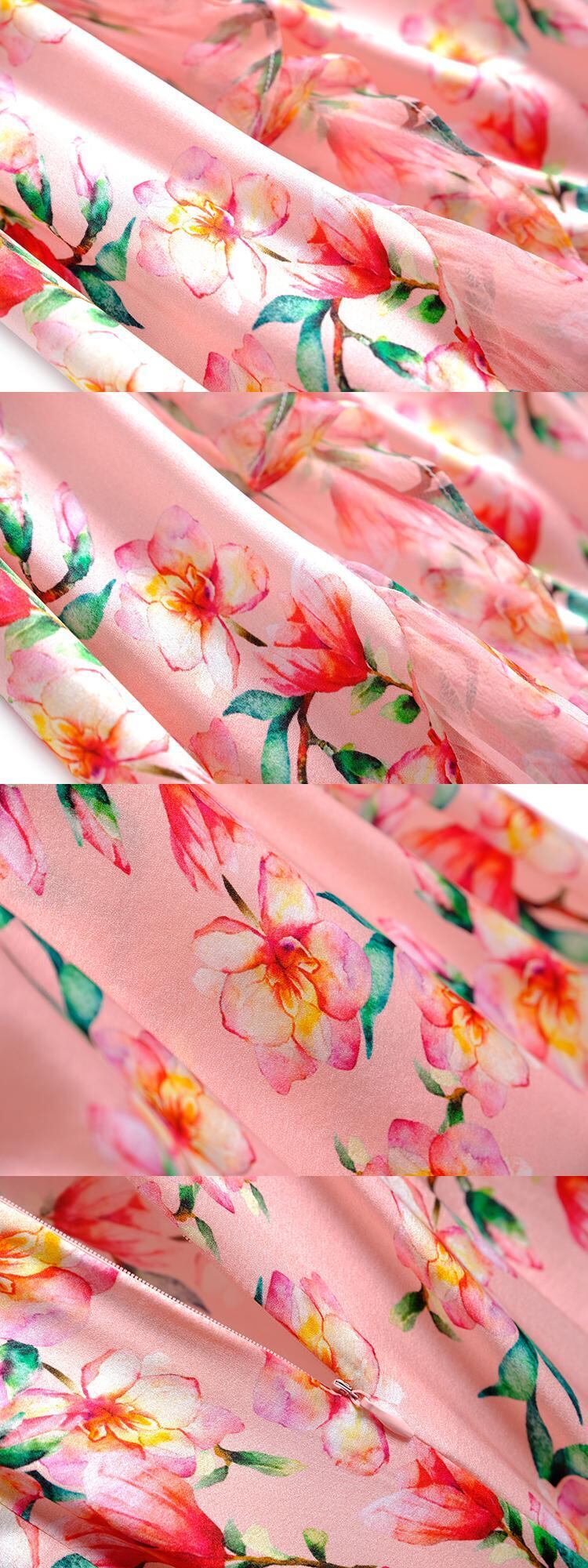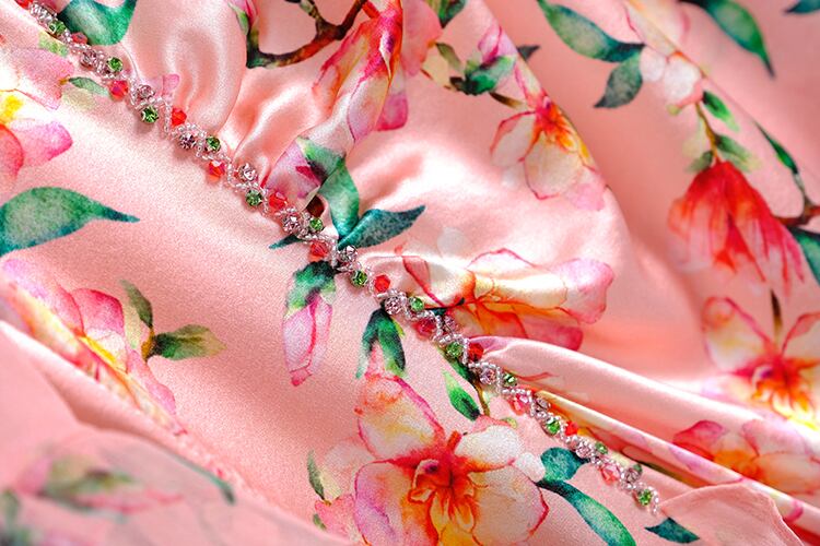 カラースリーブプリント柄ドレス サマースタイル 夏物 シルク MIUCO48594518565