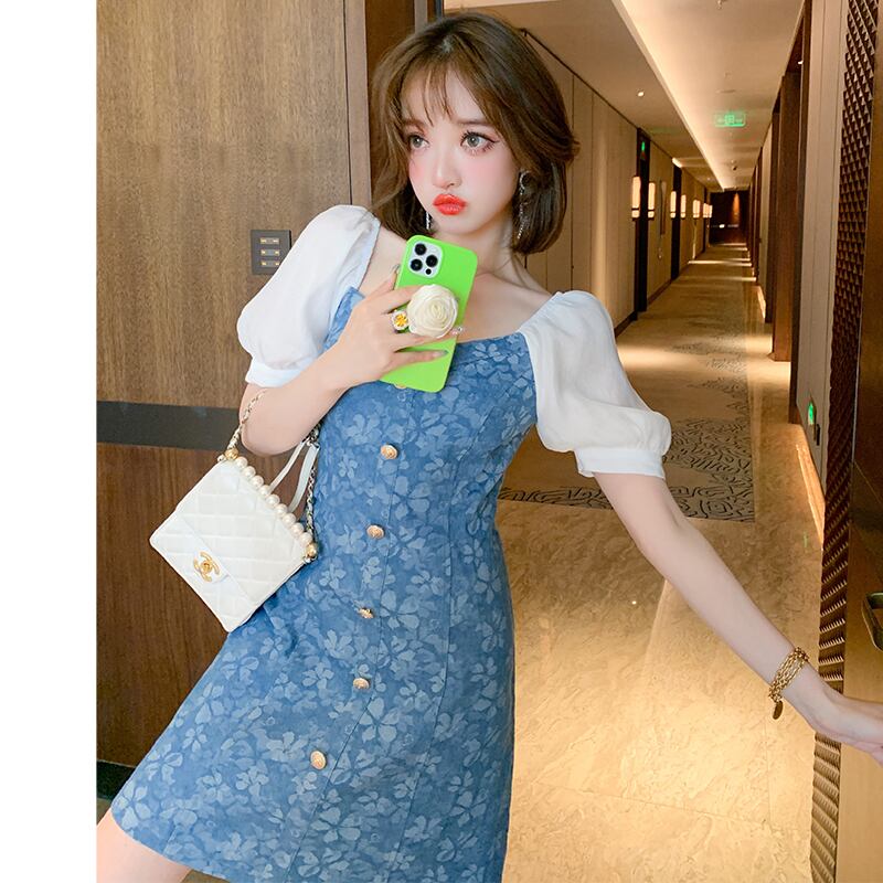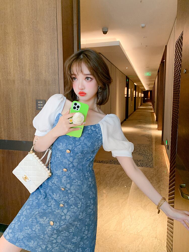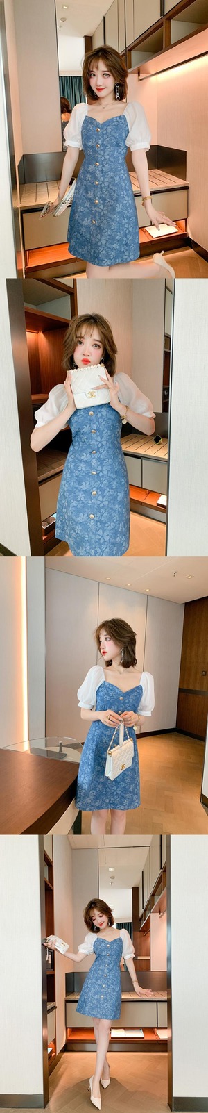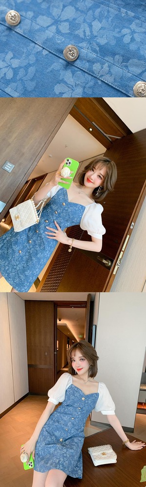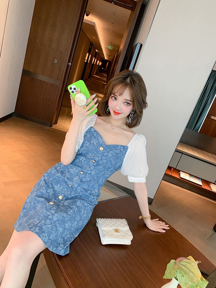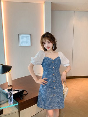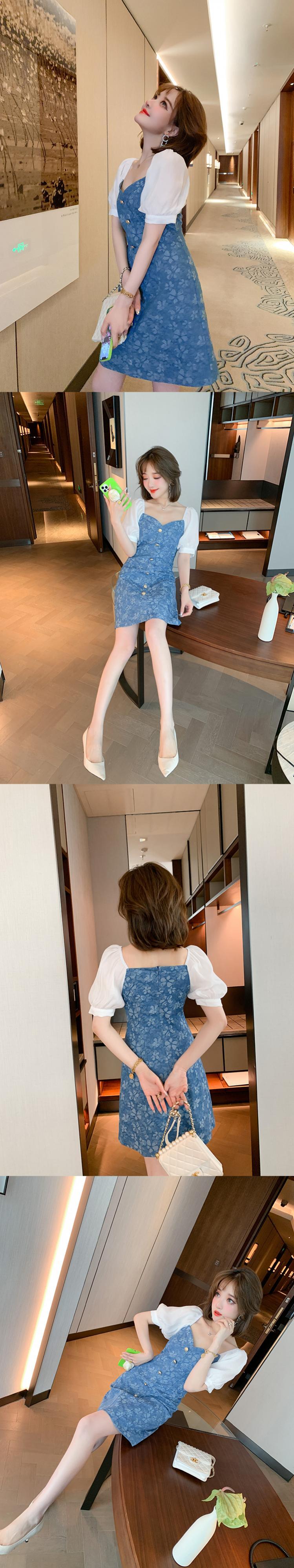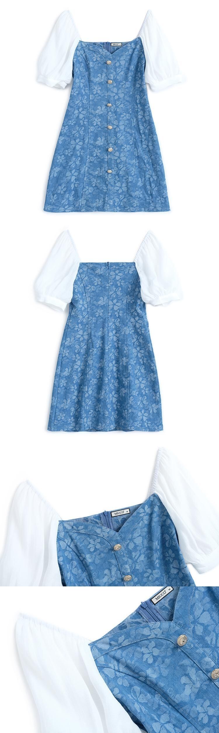 スリーブジャカードスリムドレス サマー 夏物 スクウェア ステッチ MIUCO55703387743