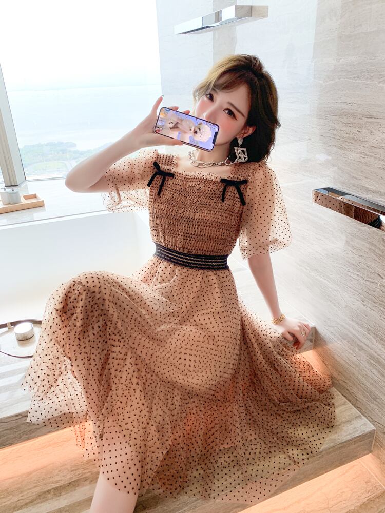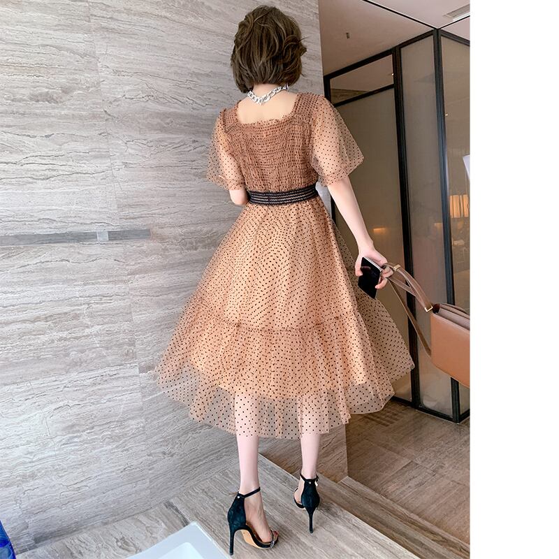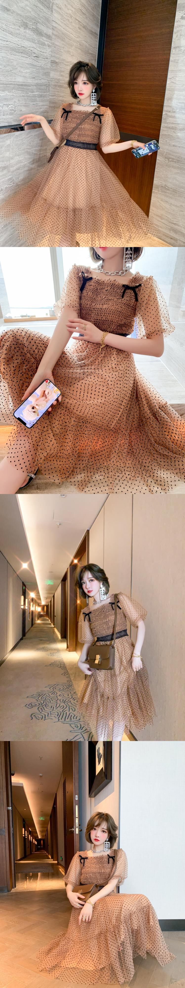 プリーツハイウェストウェストメッシュドレス スプリングサマー 春物 夏物 スクウェア MIUCO35528009423