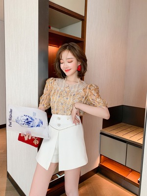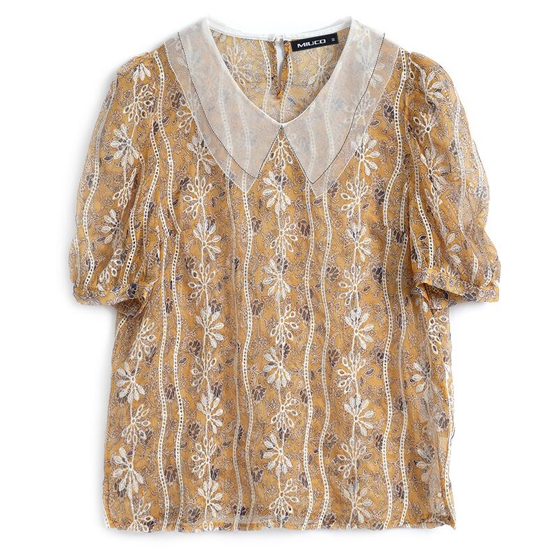 刺繍プリントシャツ トップス ステッチ MIUCO41877254872