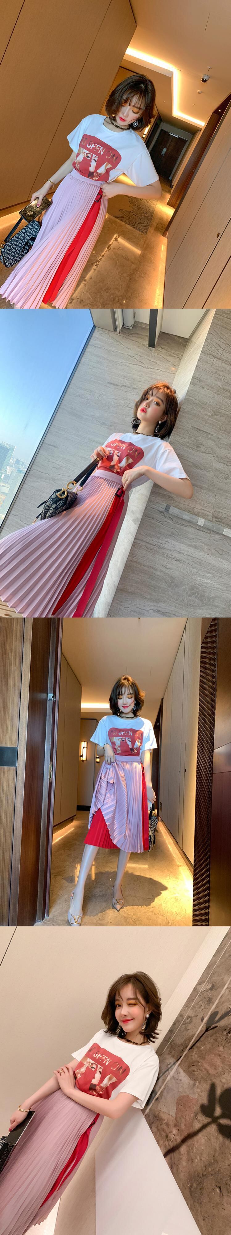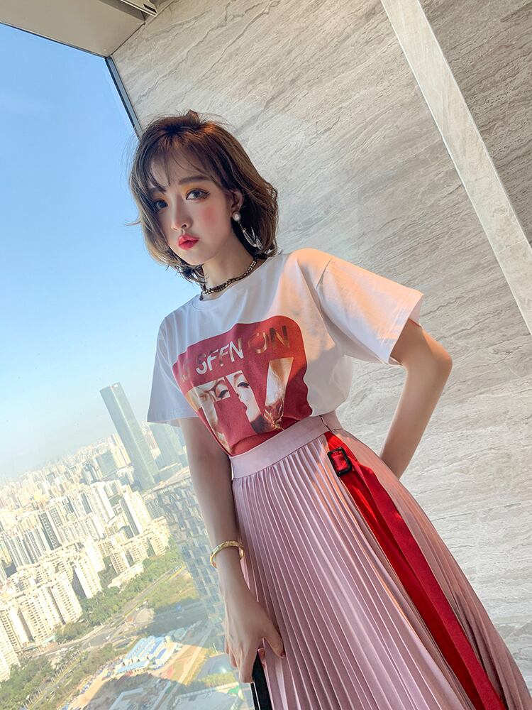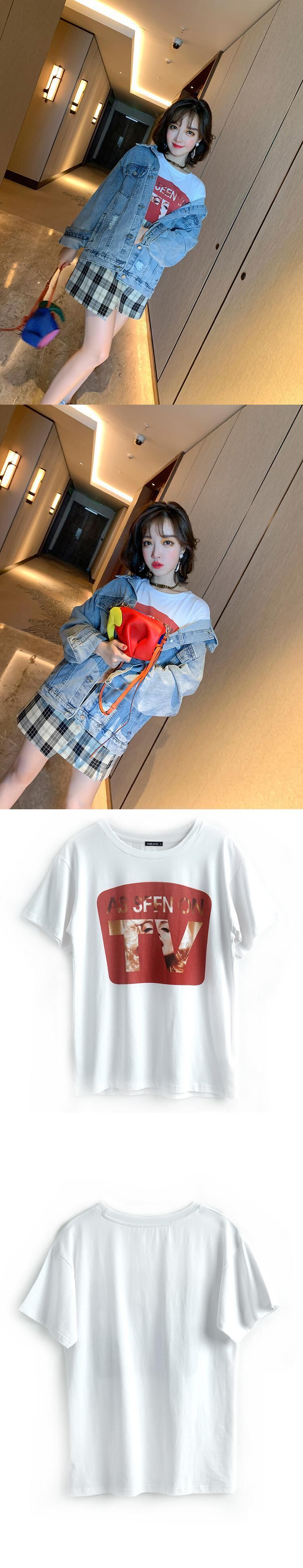 プリントラウンドネックルーズTシャツ スプリング 春物 Oネック MIUCO35862622141