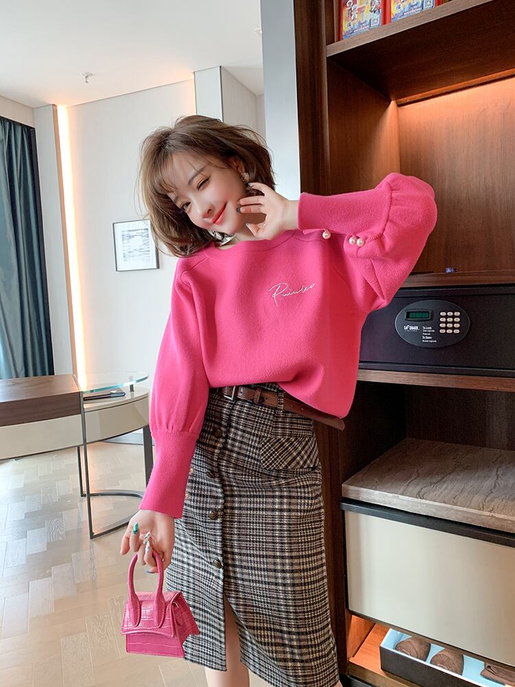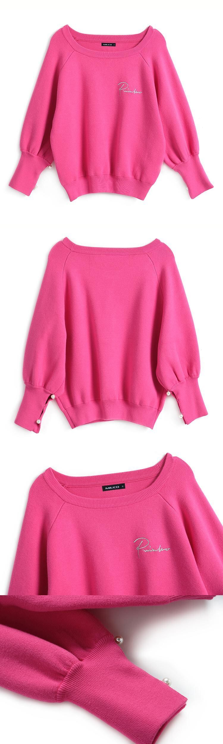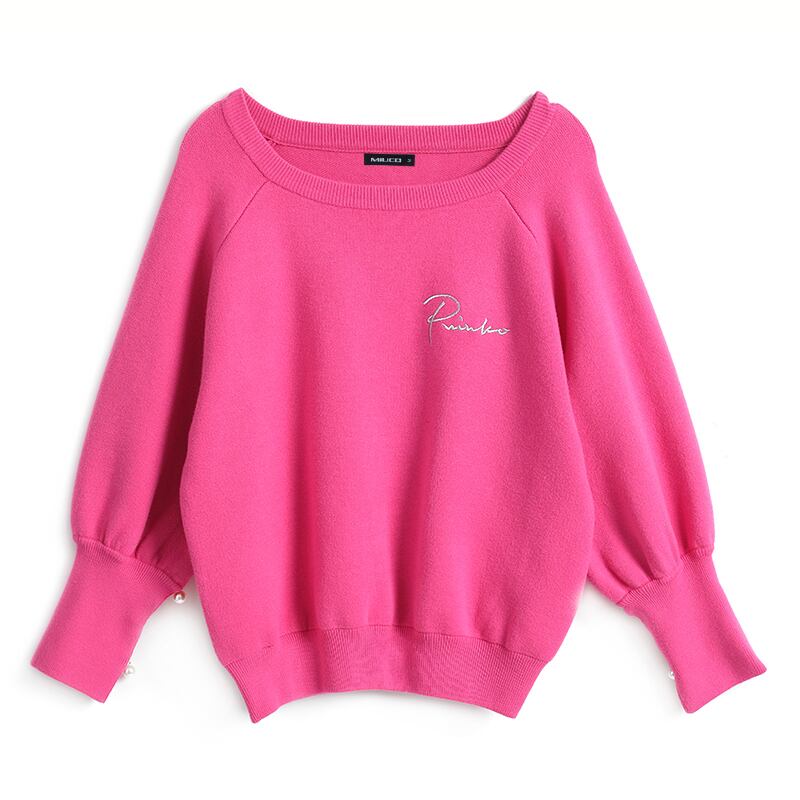 ラウンドネックニットルーズセーター レッド 刺繍 ウィンター 冬物 Oネック MIUCO32490055955