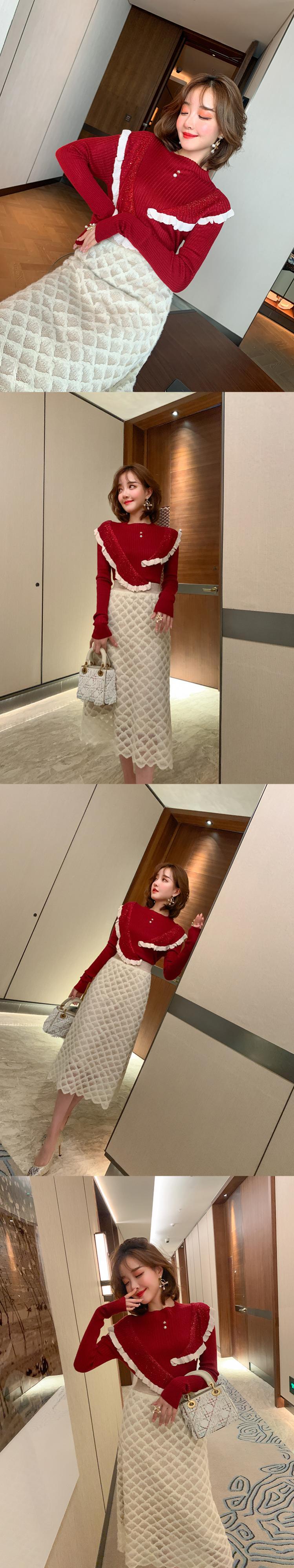 スタイルカラーレースセーター スプリング 春物 ステッチ MIUCO14890651295