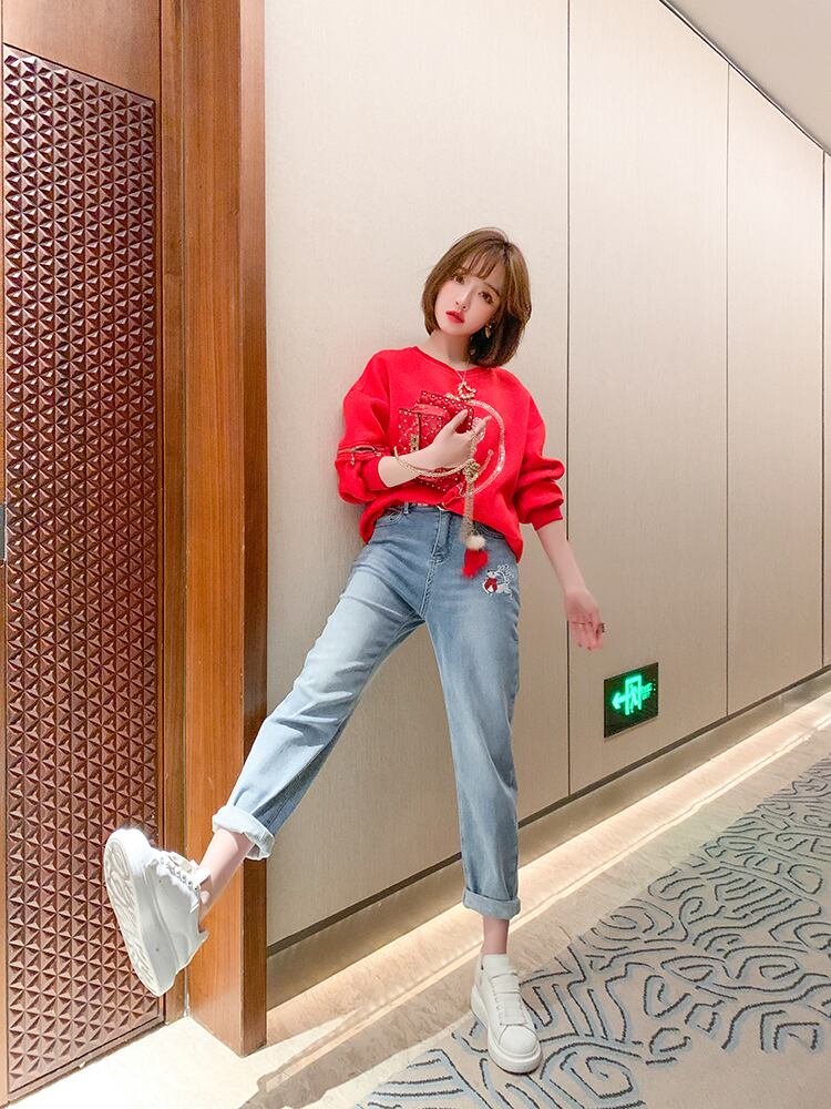刺繍ルーズ薄手ジーンズ スプリング 春物 MIUCO12306680447