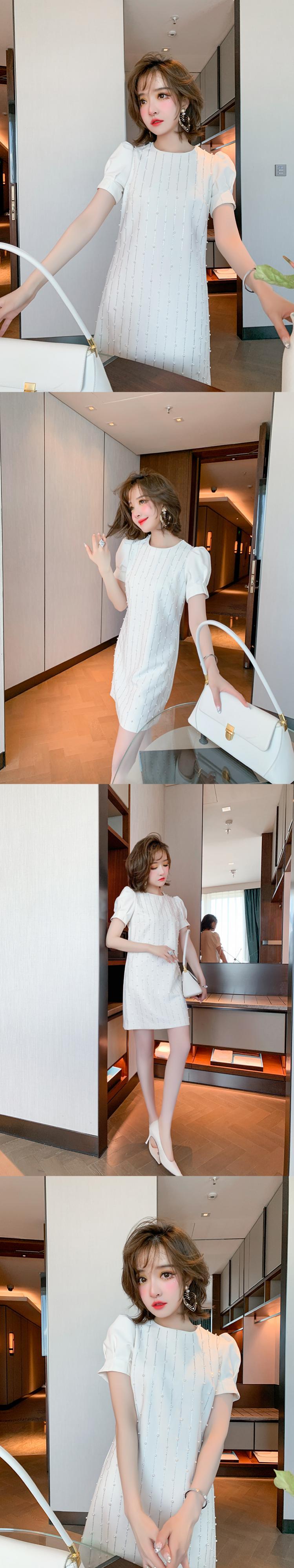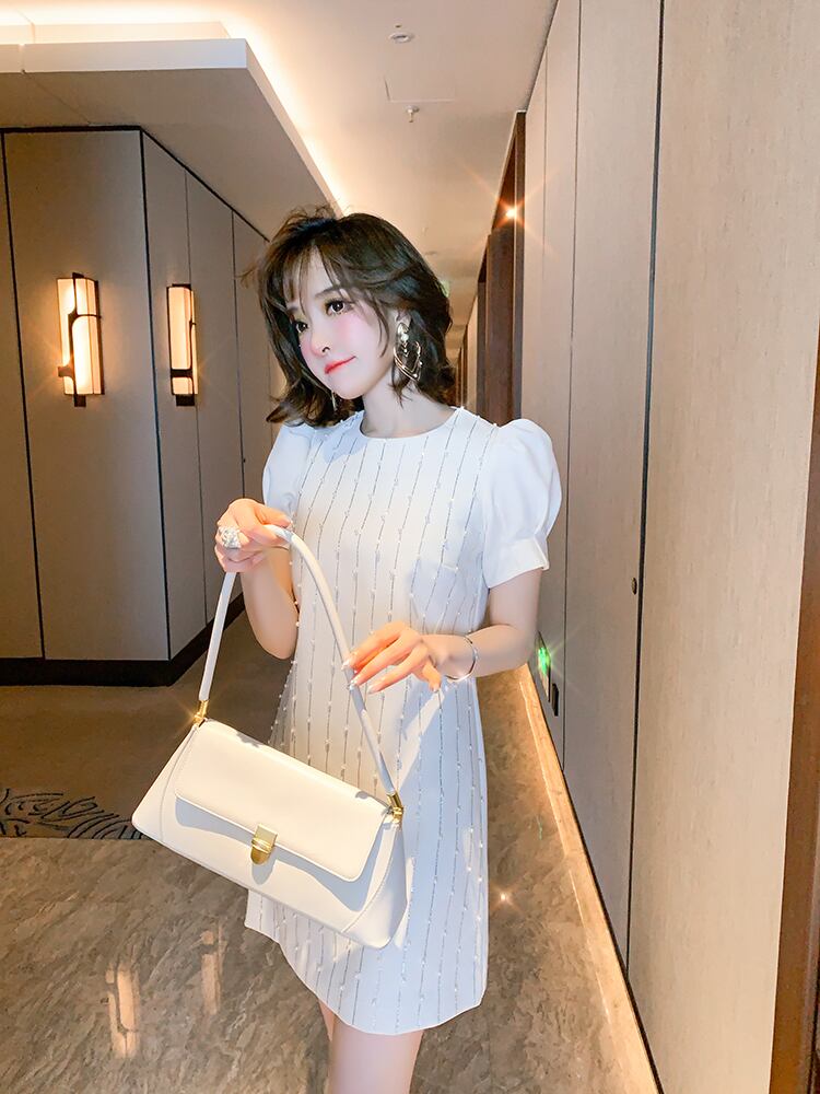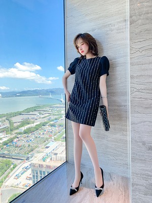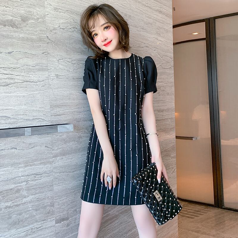 ラウンドネックスリーブストライプドレス サマースタイル 夏物 Oネック MIUCO97522046245