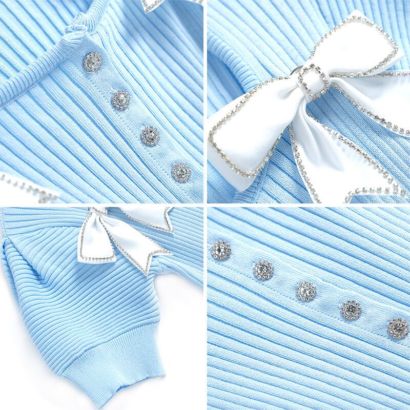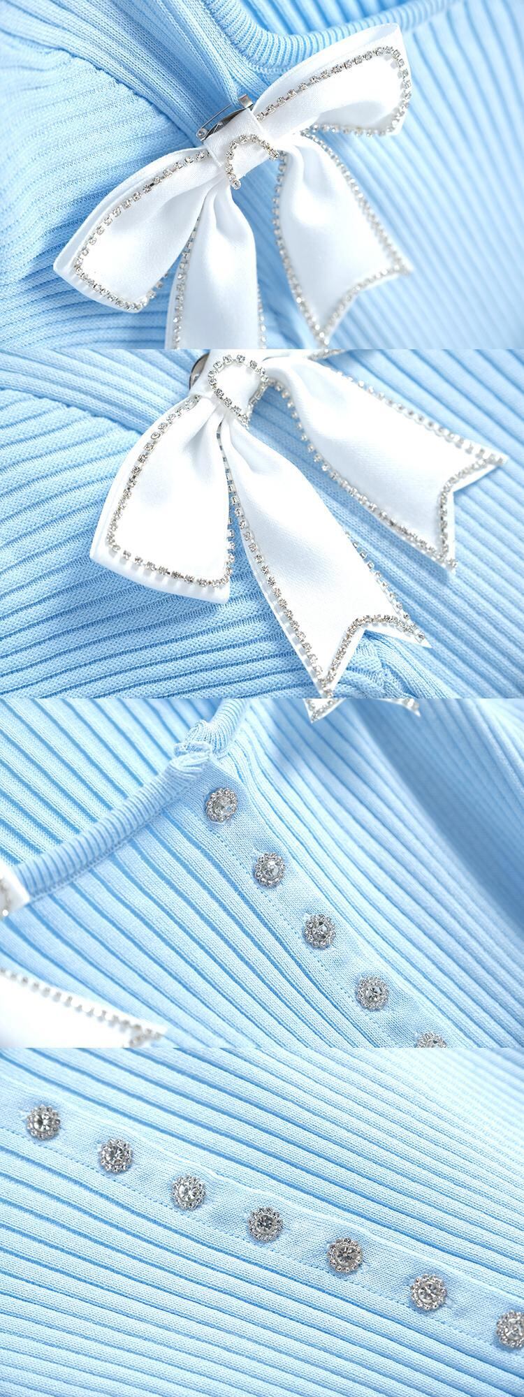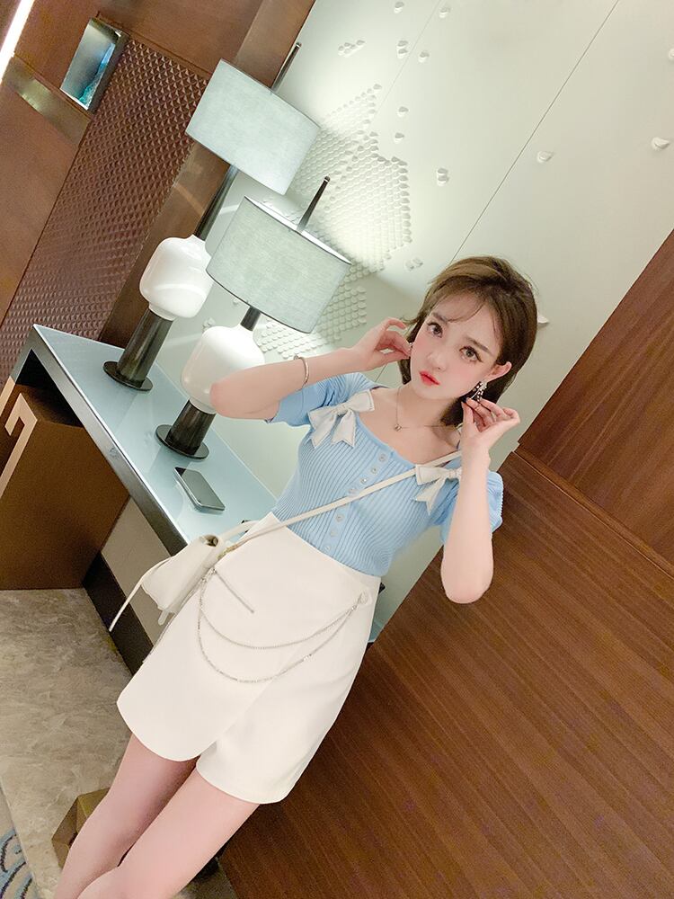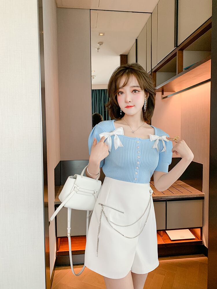 スリーブリボンスリム薄手ニットTシャツ レディースサマー 夏物 スクウェア MIUCO46650146081