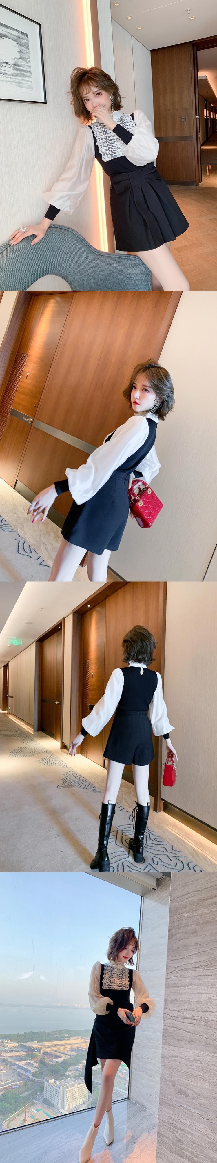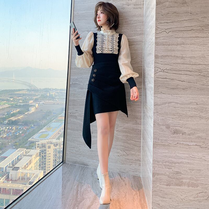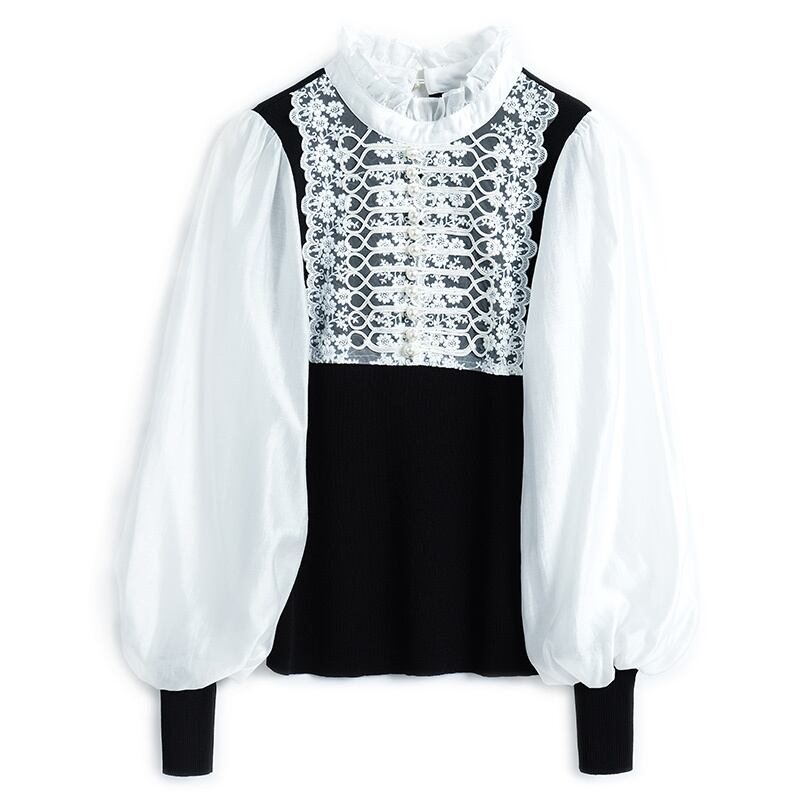 レースカラービーズ スリーブトップス ウィンター ランタンスリーブ 冬物 ステッチ MIUCO94308888406