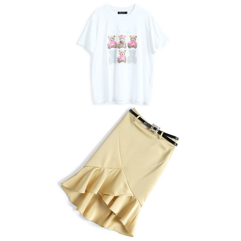 ラインストーンTシャツ スカート スプリング 春物 サマー 夏物 MIUCO43821288078