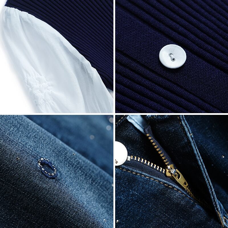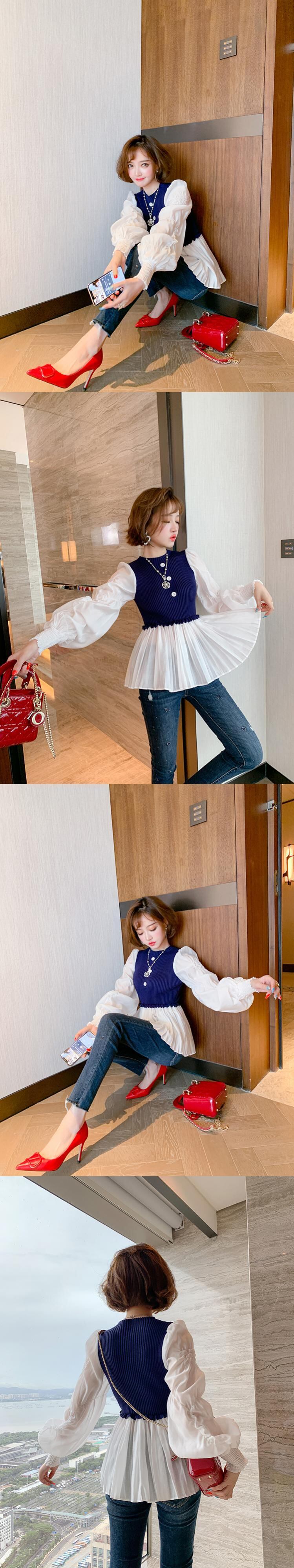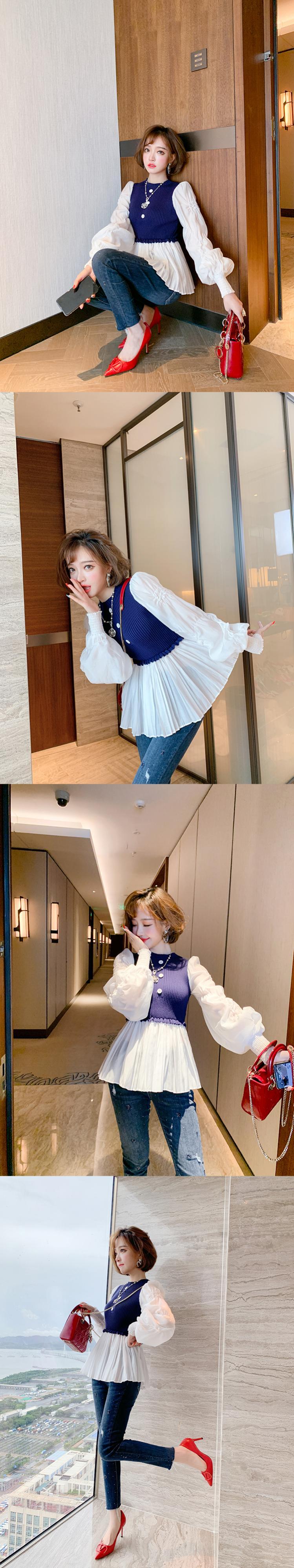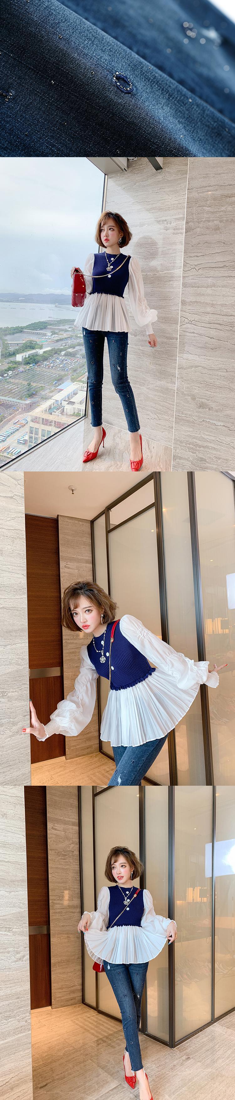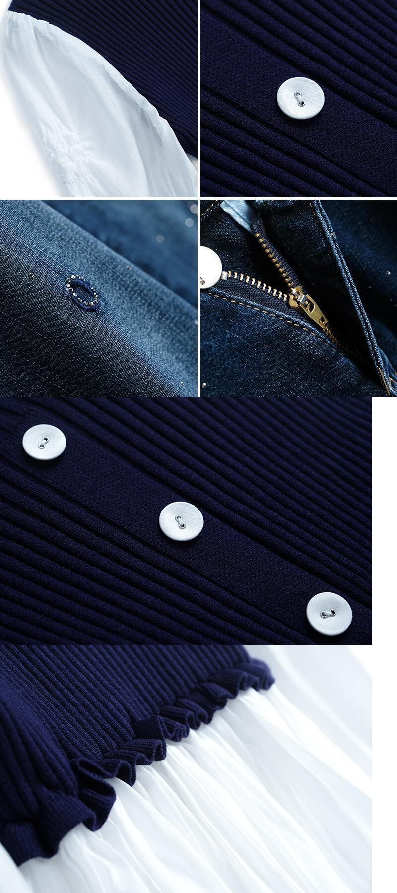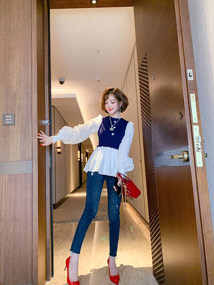ニットスリーブトップス ジーンズ セット オータム ランタンスリーブ 秋物 MIUCO90729970576
