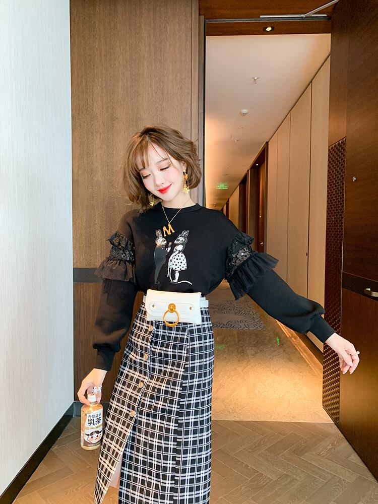 メッシュプリント柄セーター オータム 秋物 ステッチ MIUCO41880940029