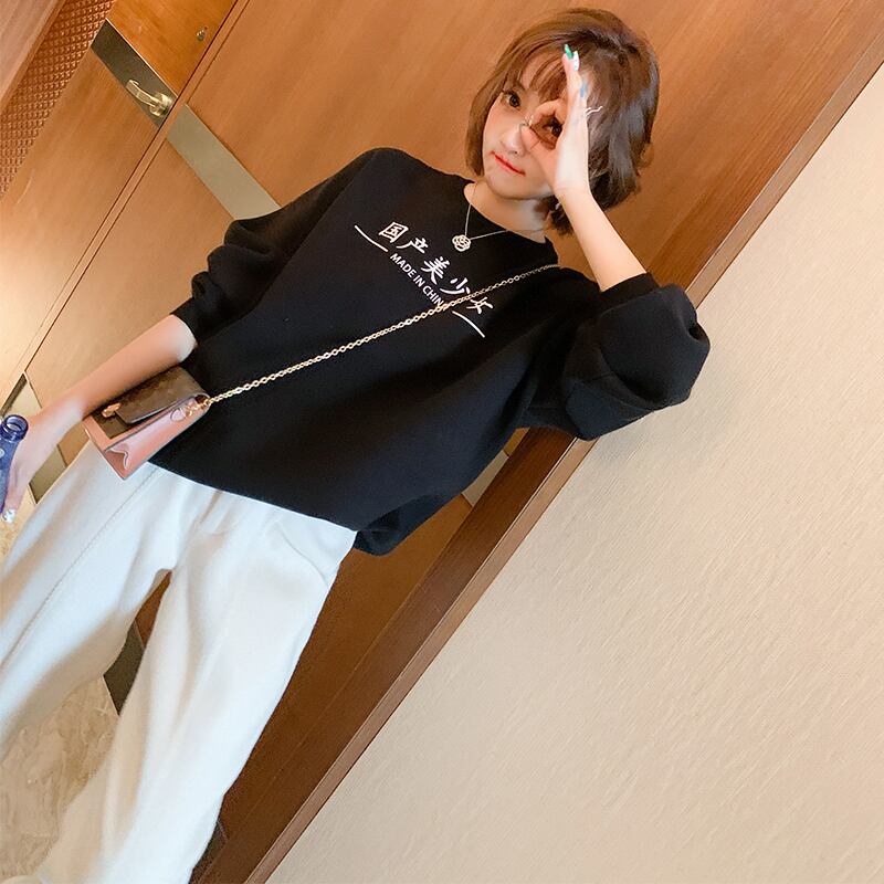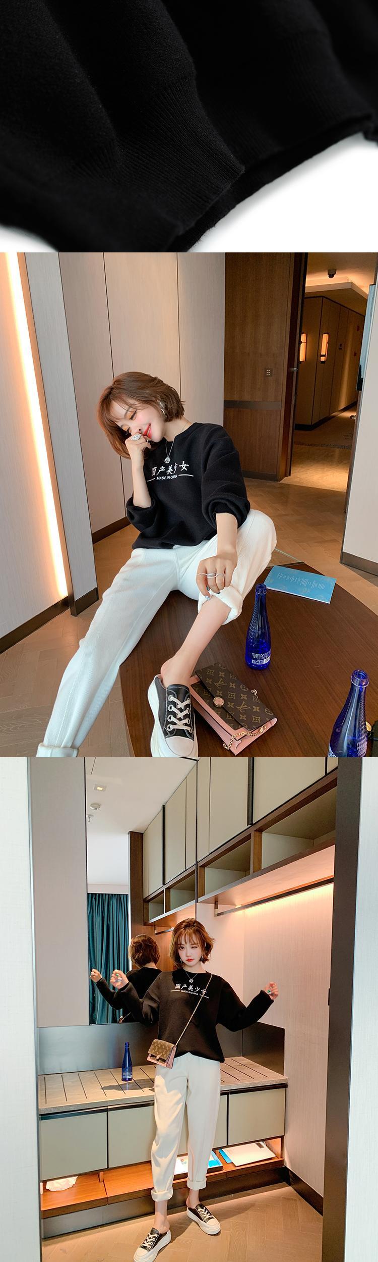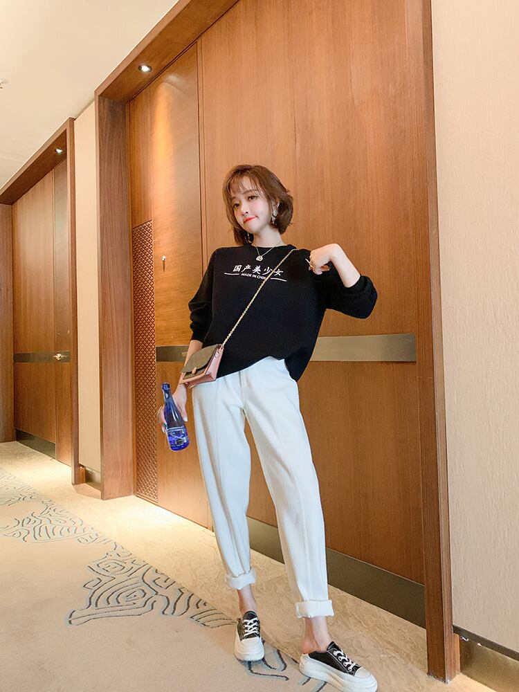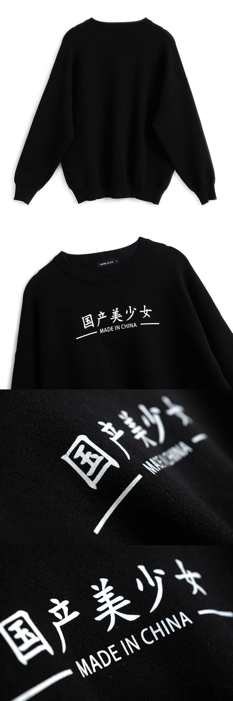 プリントルーズラウンドネックプルオーバー カラーニットセーター オータムウィンター 秋物 冬物 Oネック ピュア MIUCO61803616467