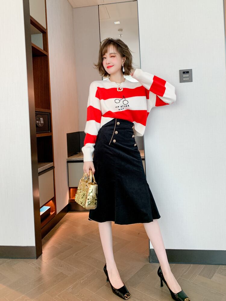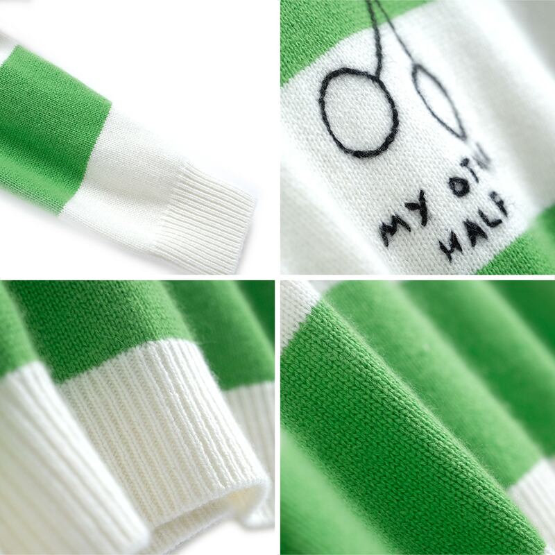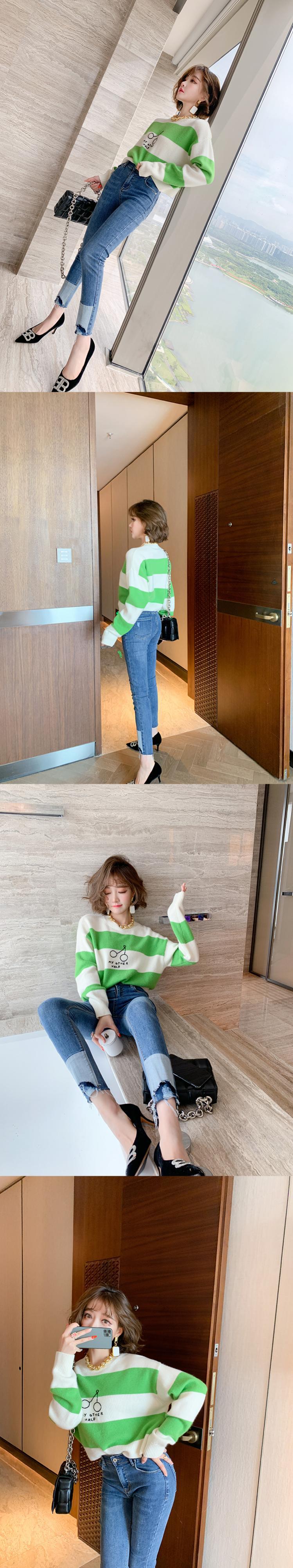 カラーストライプラウンドネックルーズショートセーター スタイル Oネック MIUCO19786926917