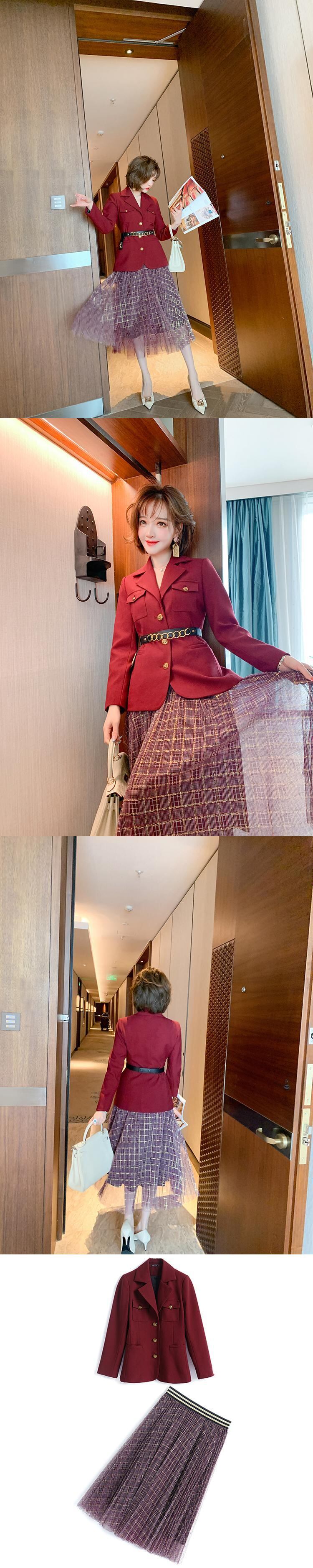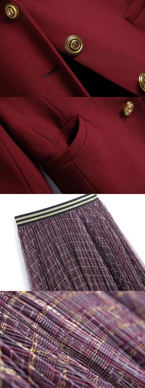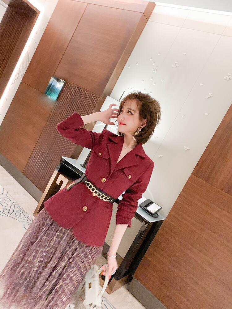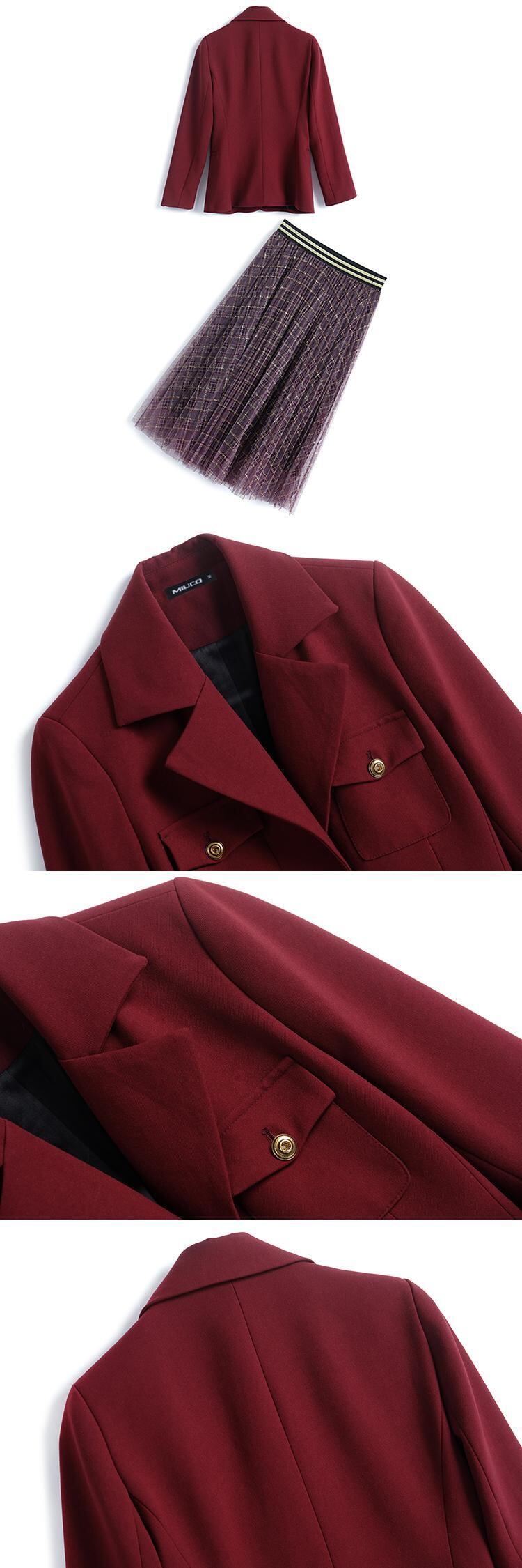 ウェストブレザー メッシュスカート スプリング レッド 刺繍 春物 MIUCO45698004373