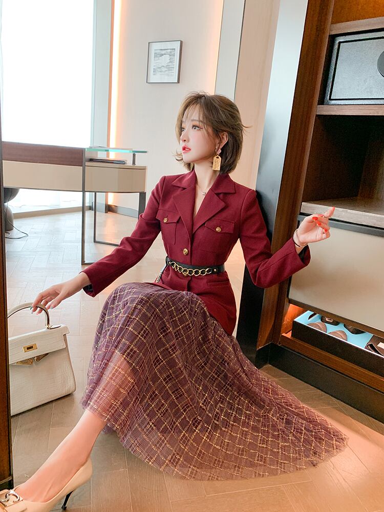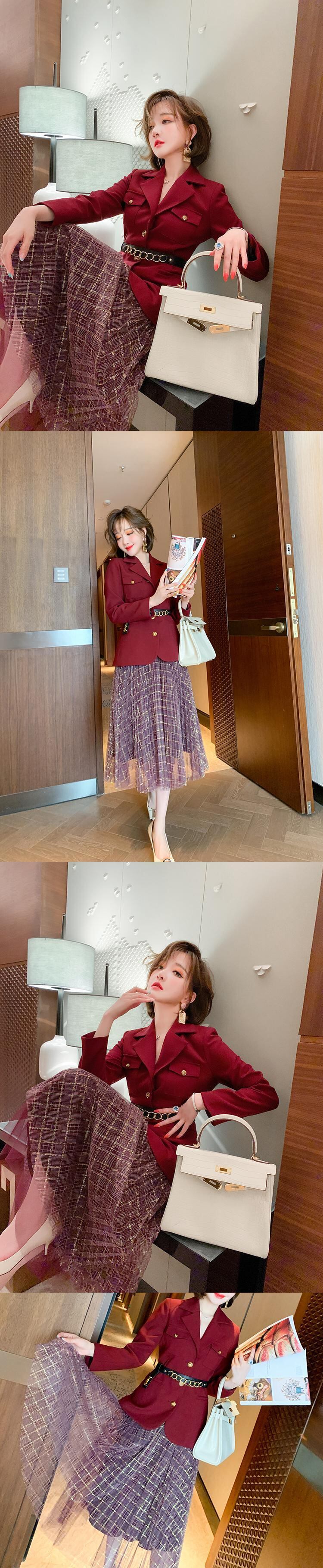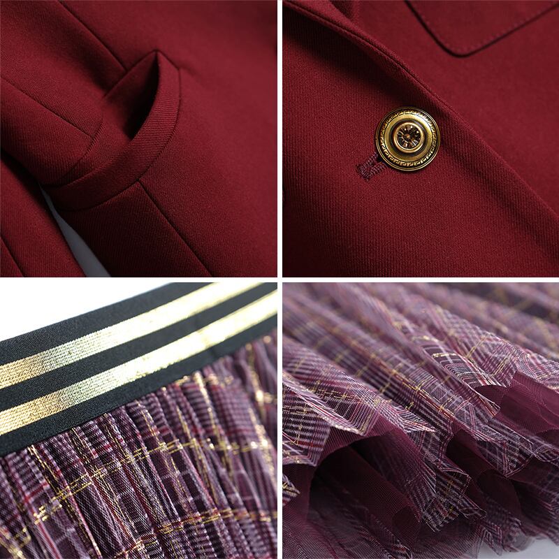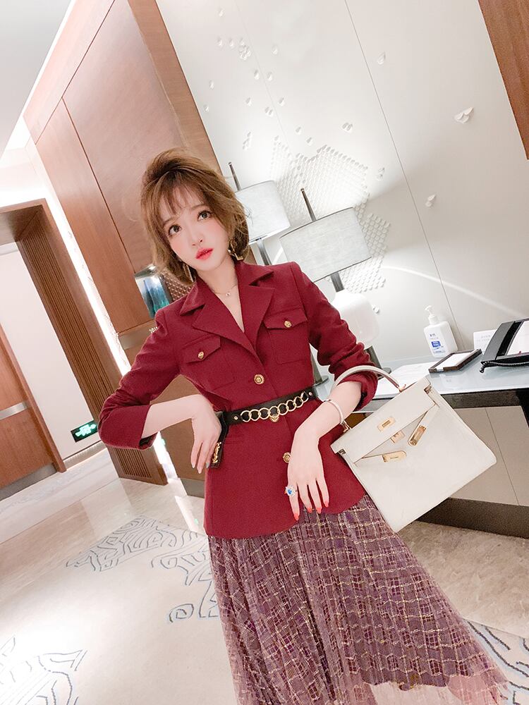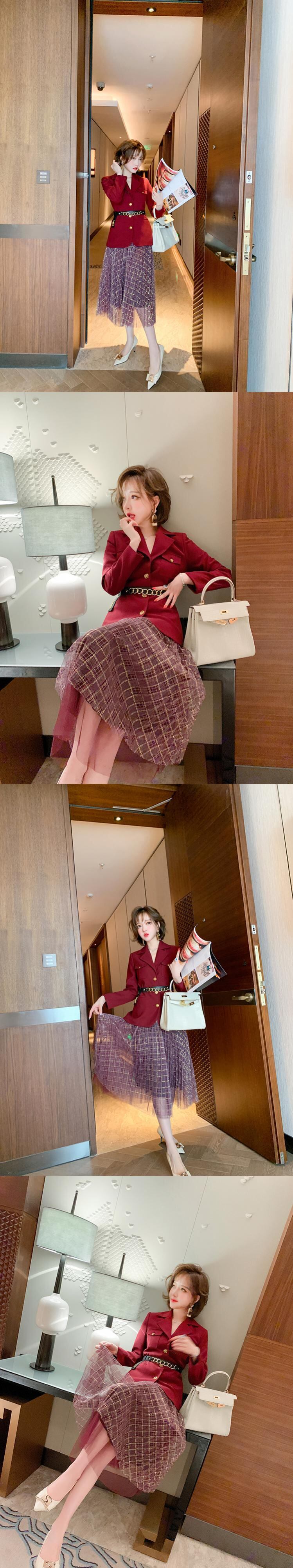 ウェストブレザー メッシュスカート スプリング レッド 刺繍 春物 MIUCO45698004373