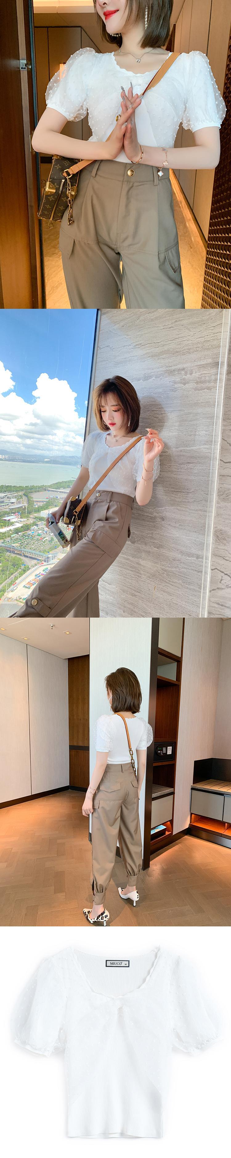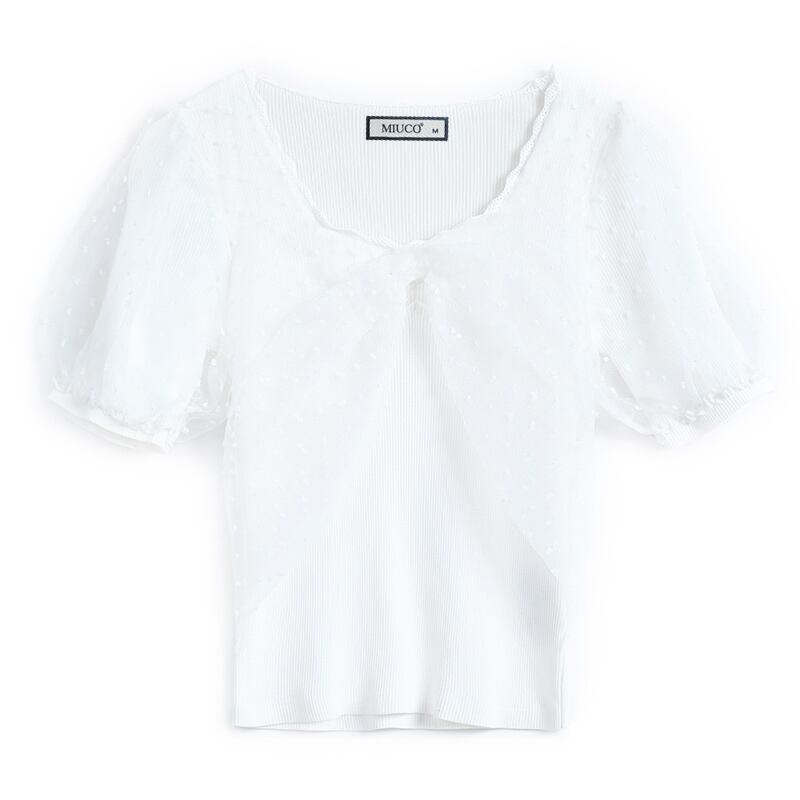 レースメッシュスリーブニットトップス オータム 大人ガーリー スウィート キュート カジュアル 秋物 ステッチ MIUCO97174090243