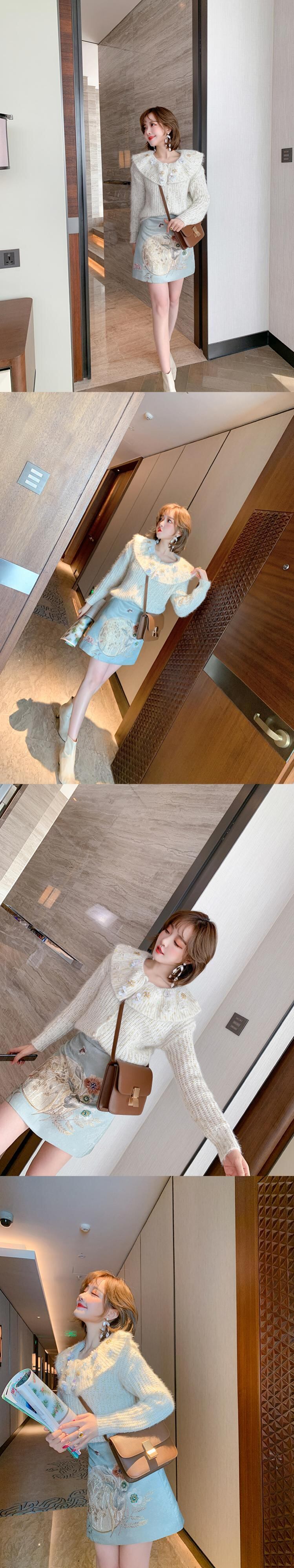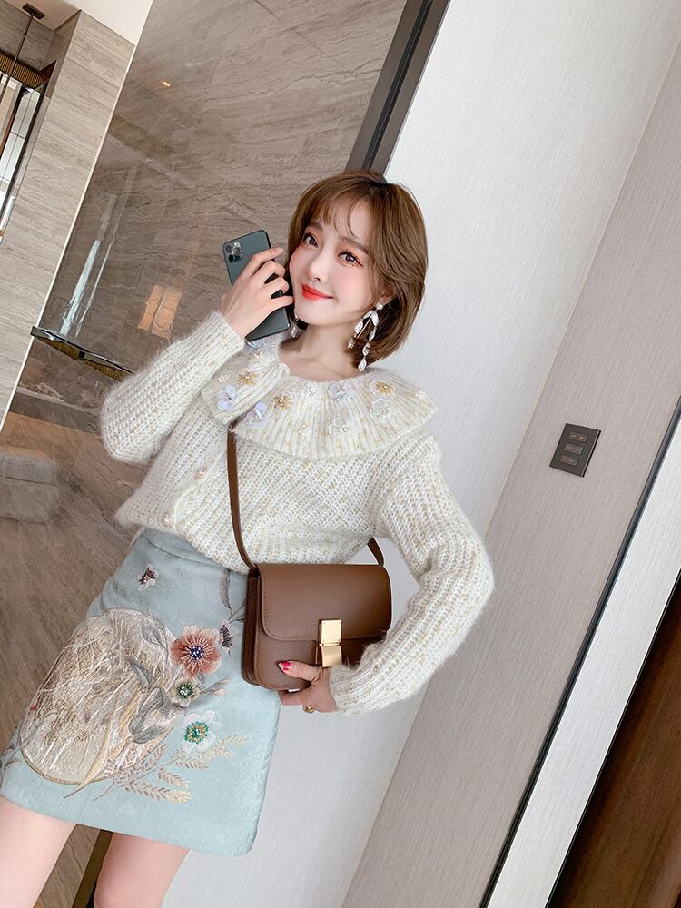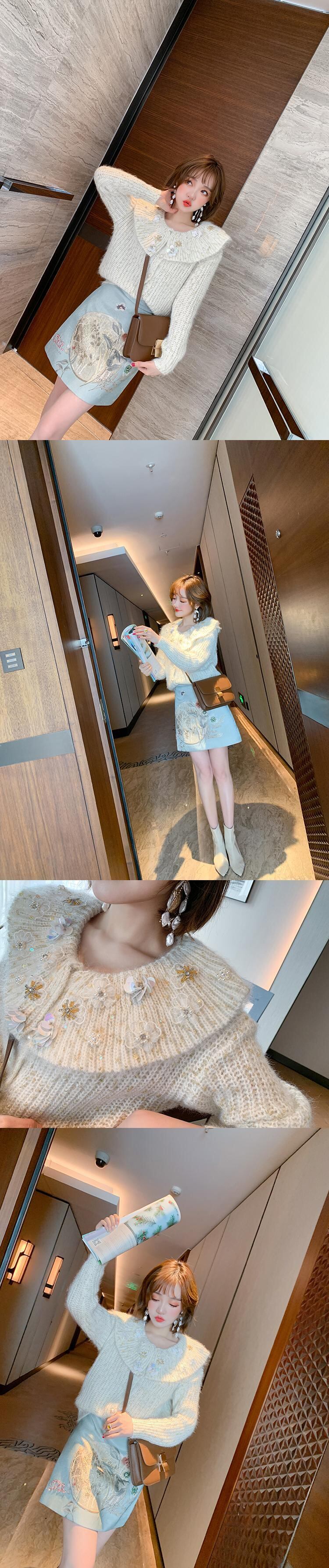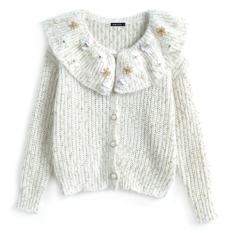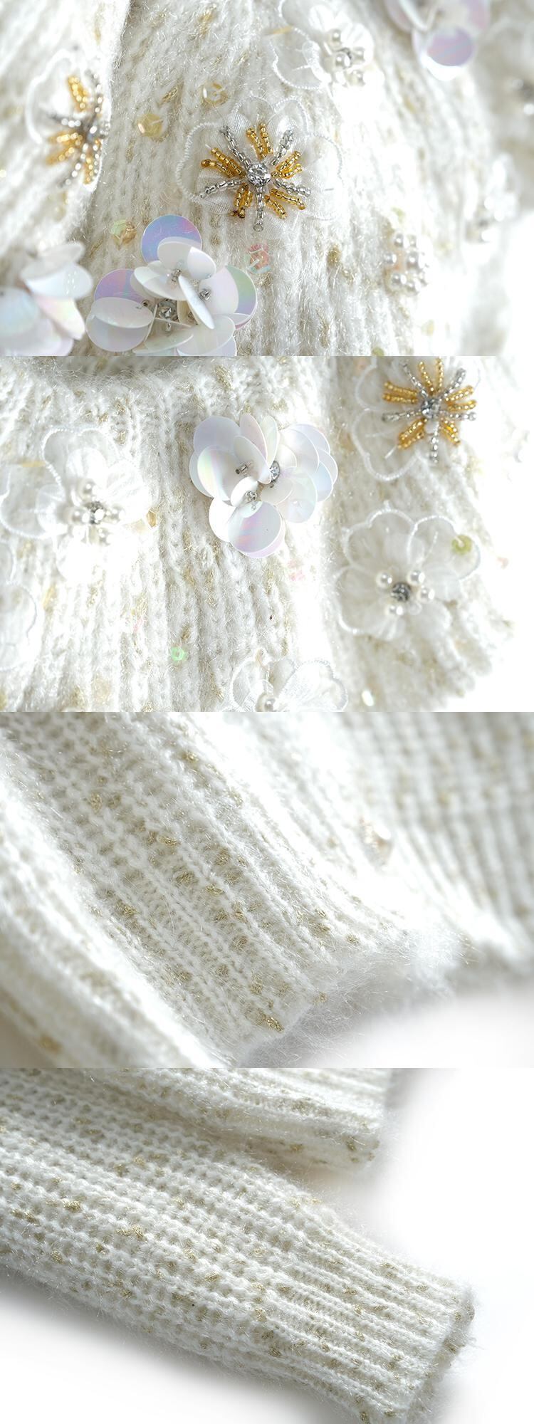 ゴールドFlowerデザイン ニットカーディガンスプリングスタイル 春物 フラワーデザイン MIUCO87721900310