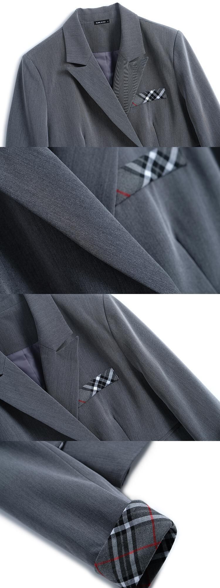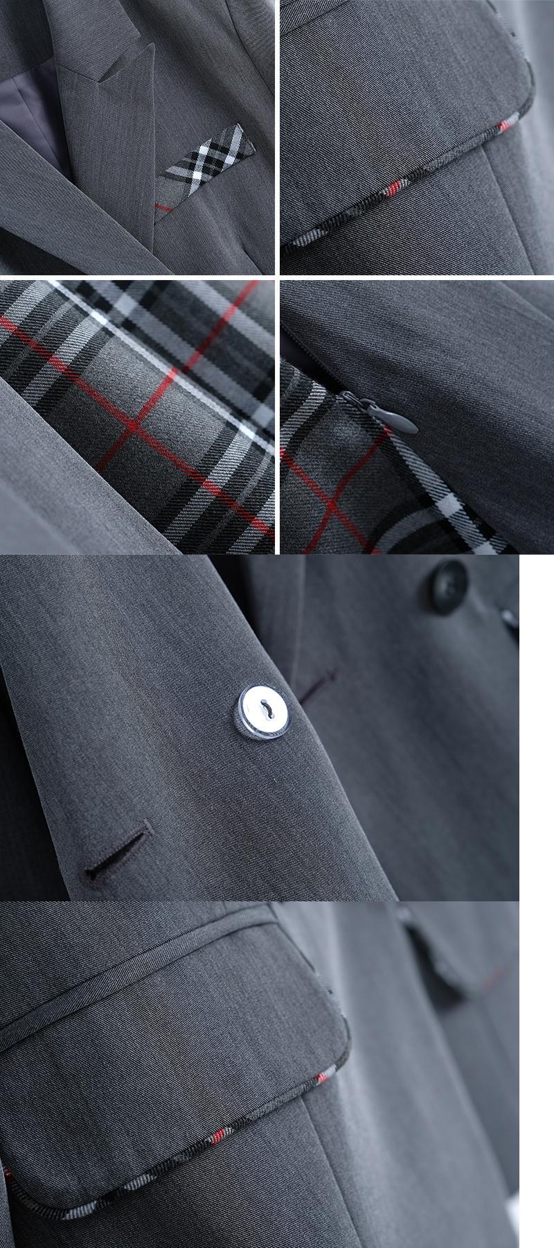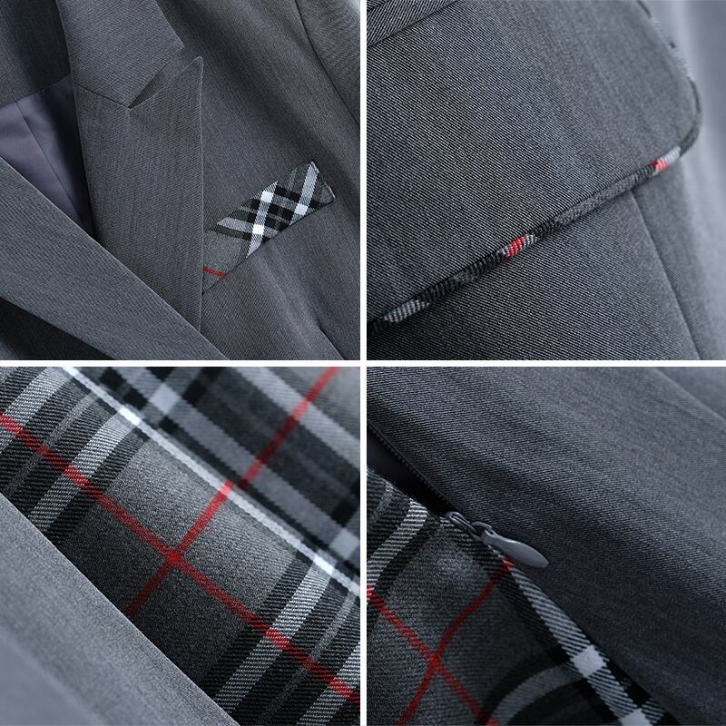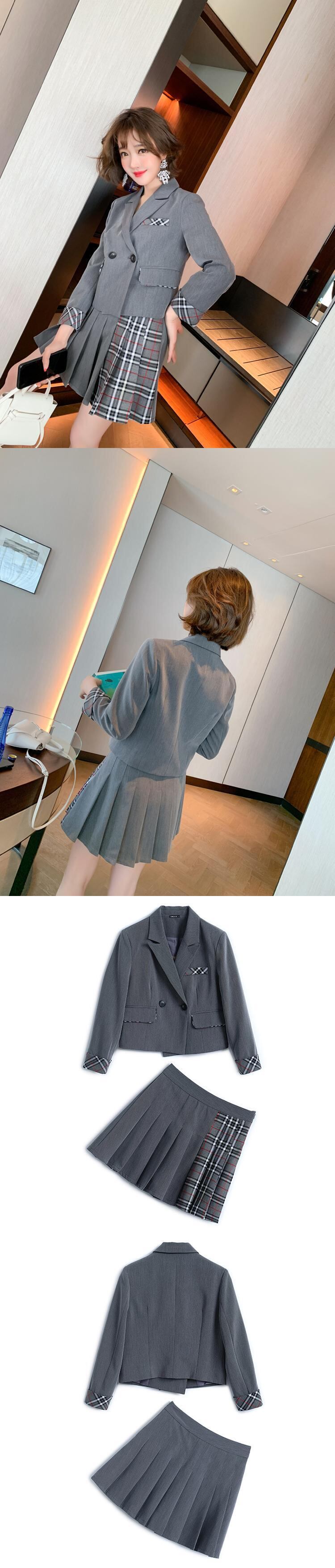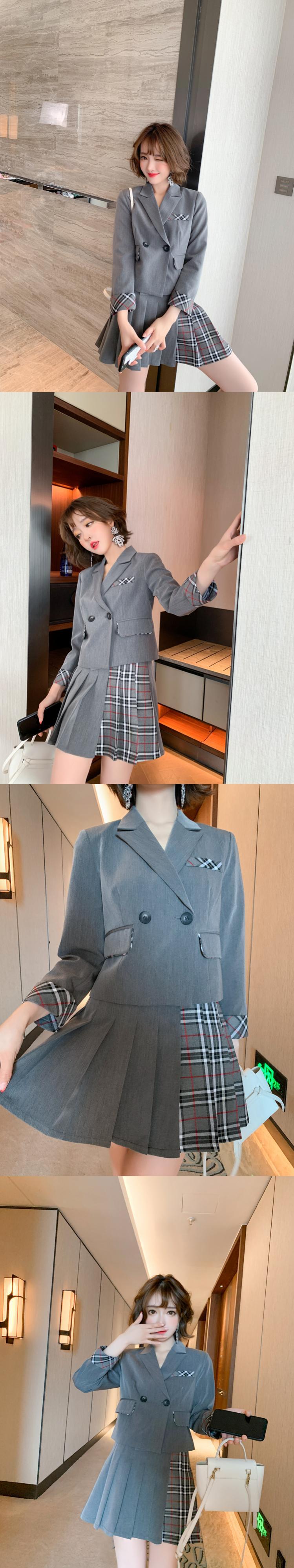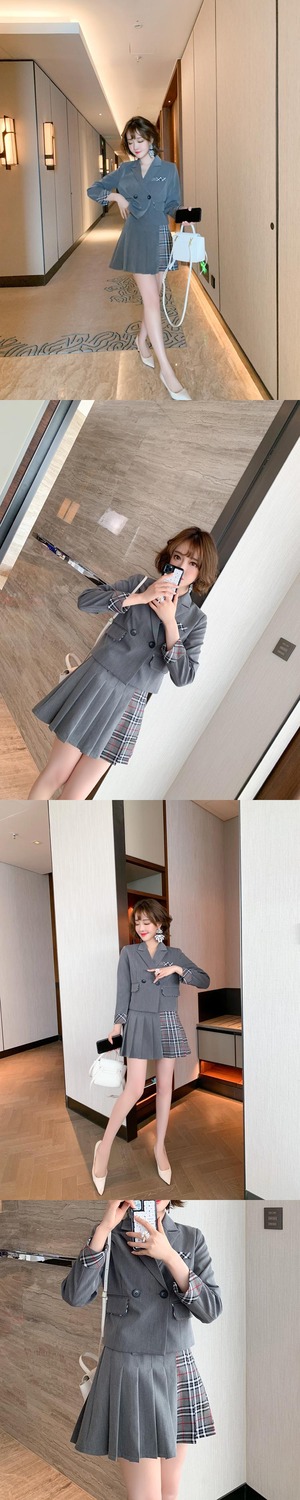 ダブルブレストショートブレザー 格子柄プリーツスカート スプリング 春物 ステッチ MIUCO26724773773