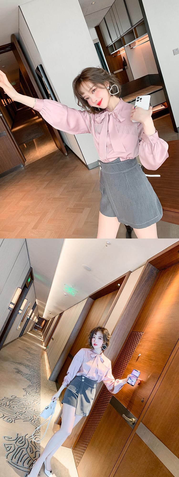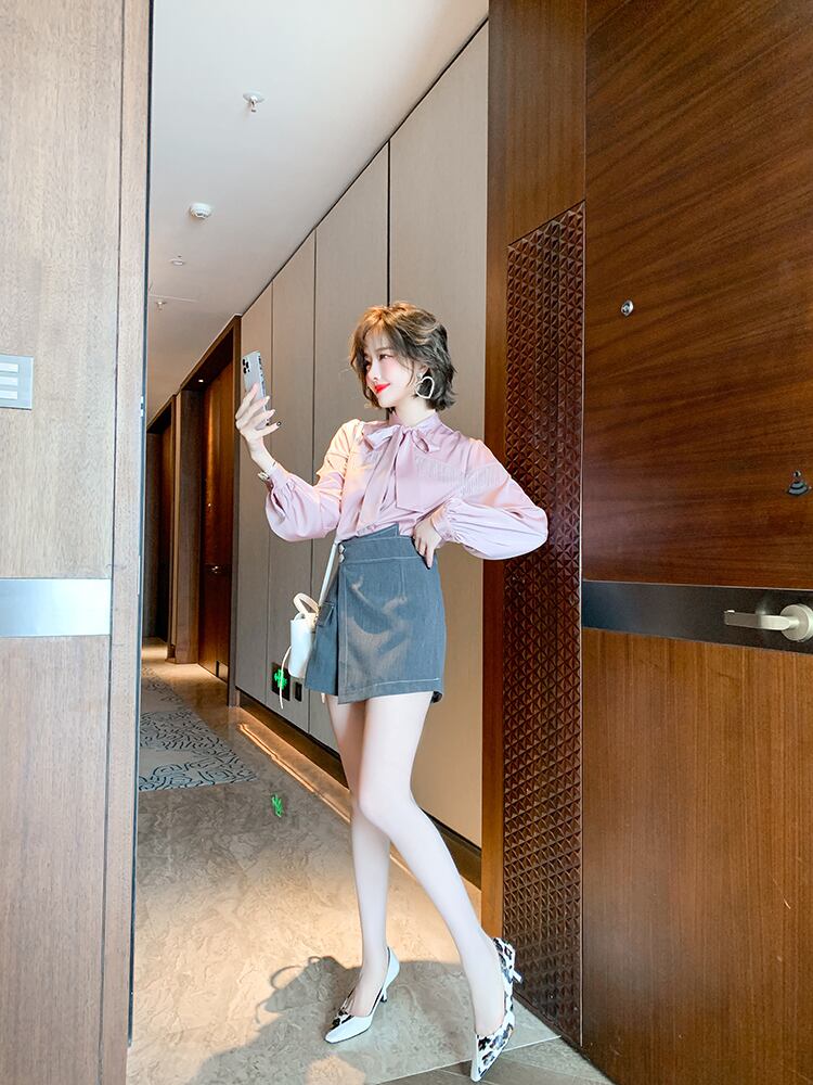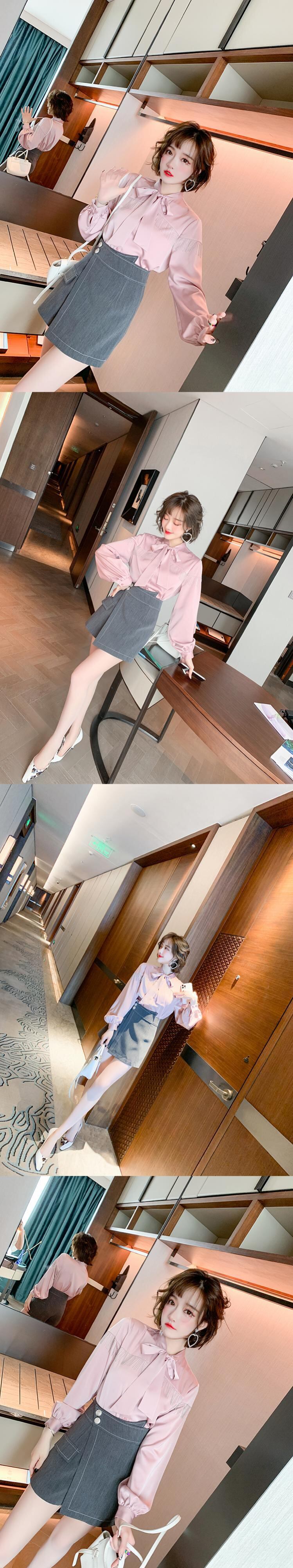 カラーシャツ スプリング リボン 春物 MIUCO23056575428