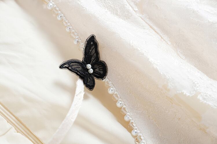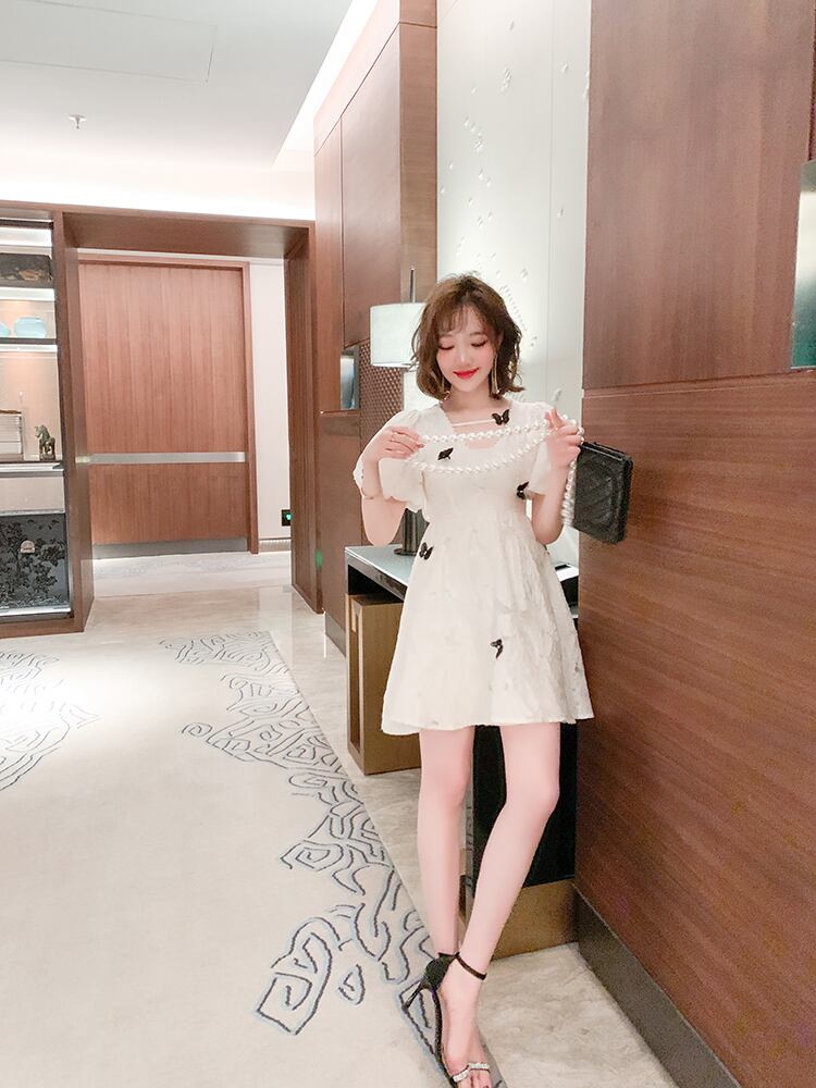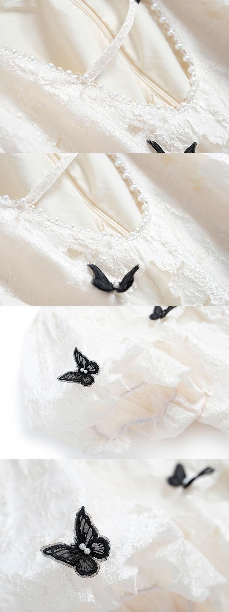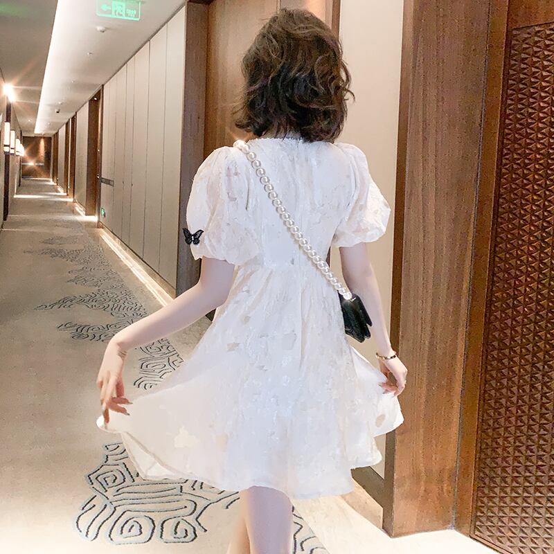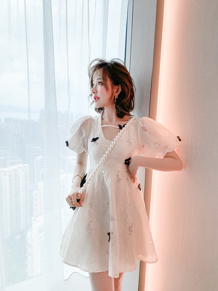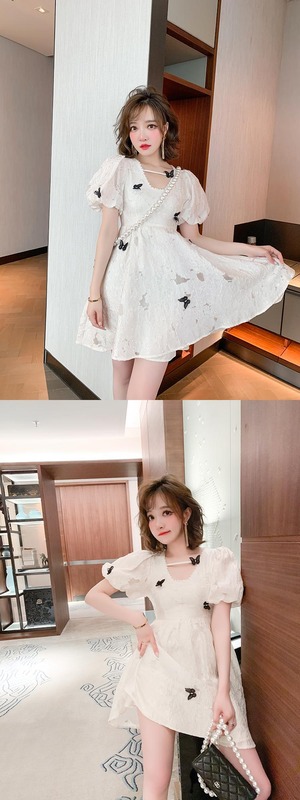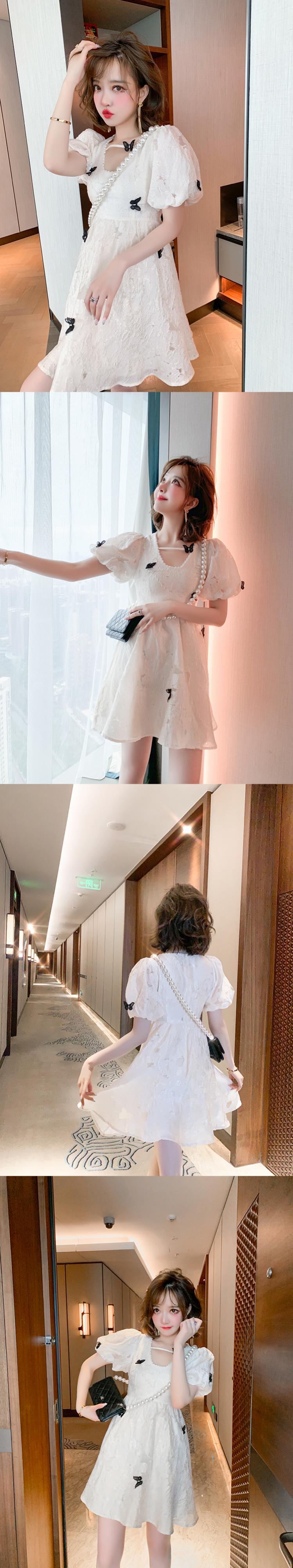 スリーブリボンジャカードウェストドレス サマー 大人ガーリー スウィート キュート カジュアル 夏物 MIUCO93411701348