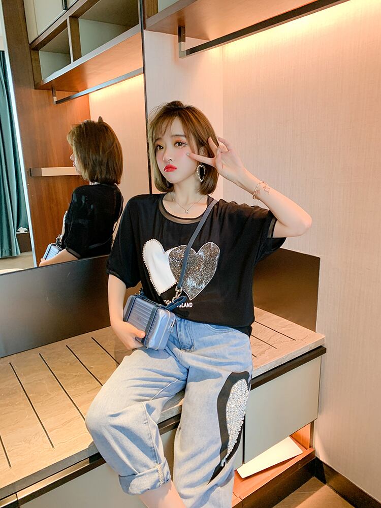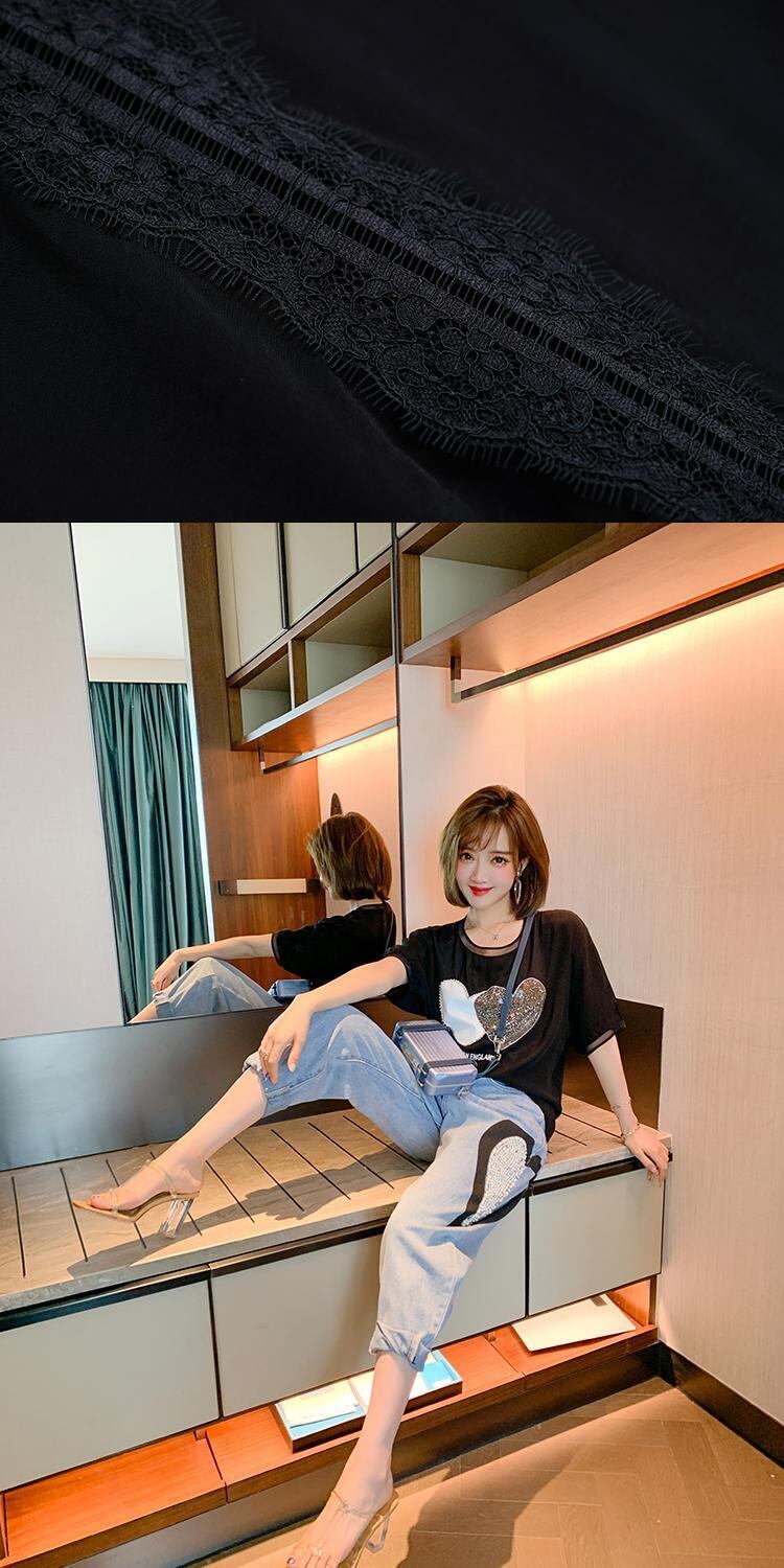レースルーズ薄手ラウンドネックTシャツ オータム 秋物 Oネック ステッチ MIUCO82290988092