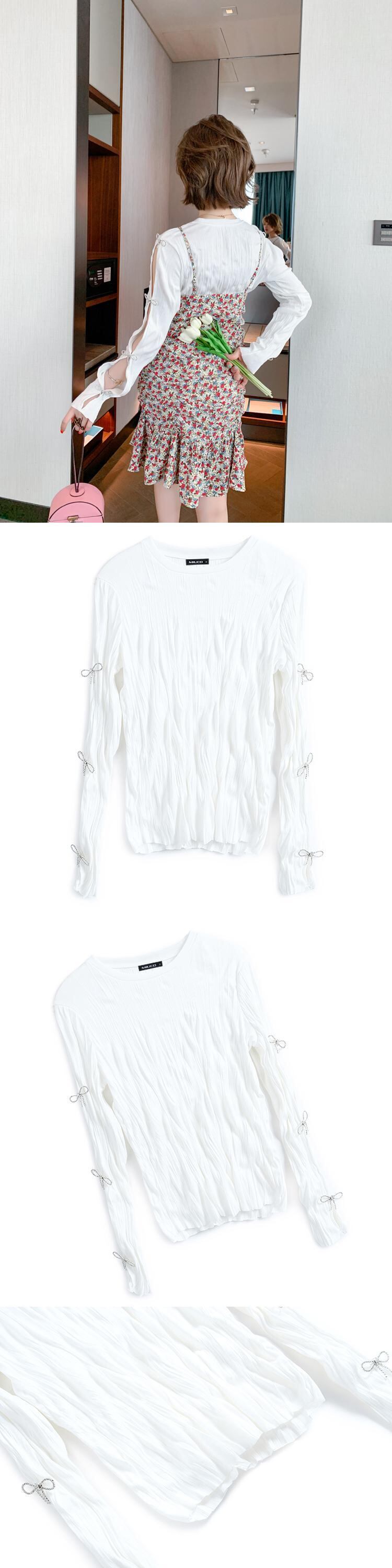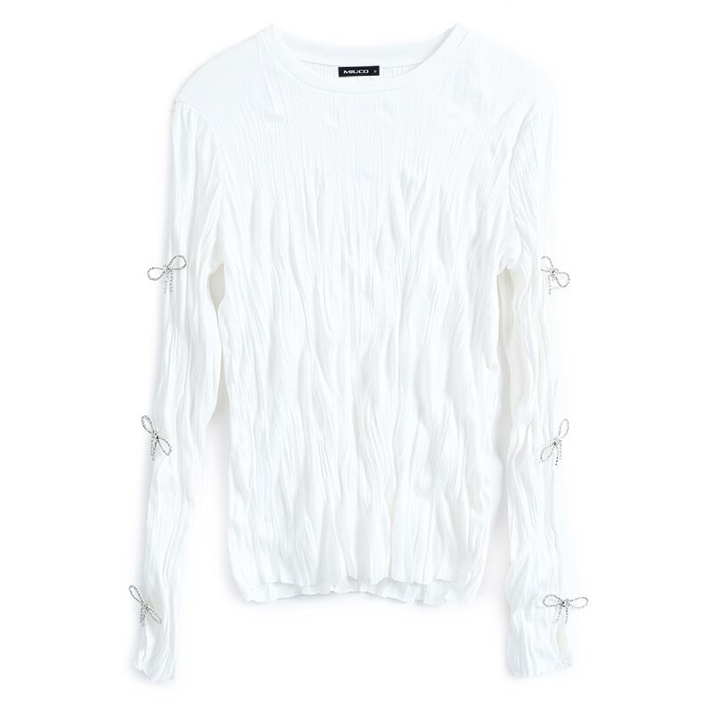 ラウンドネックカラートップス スプリング リボン 春物 Oネック ピュア MIUCO36226961977