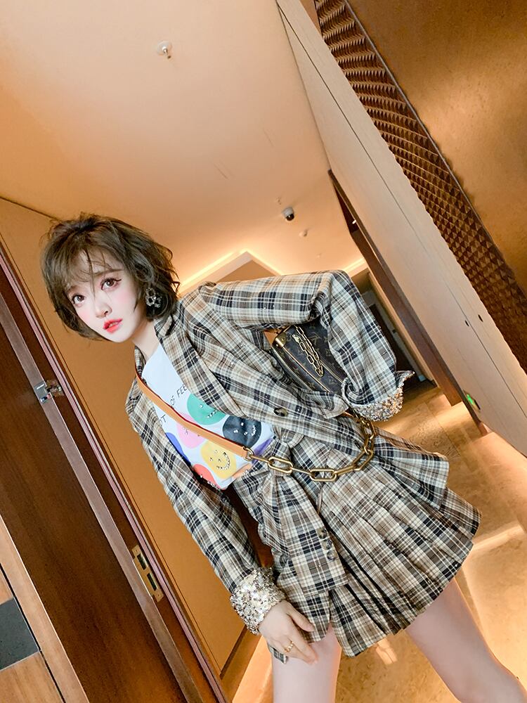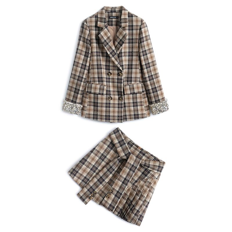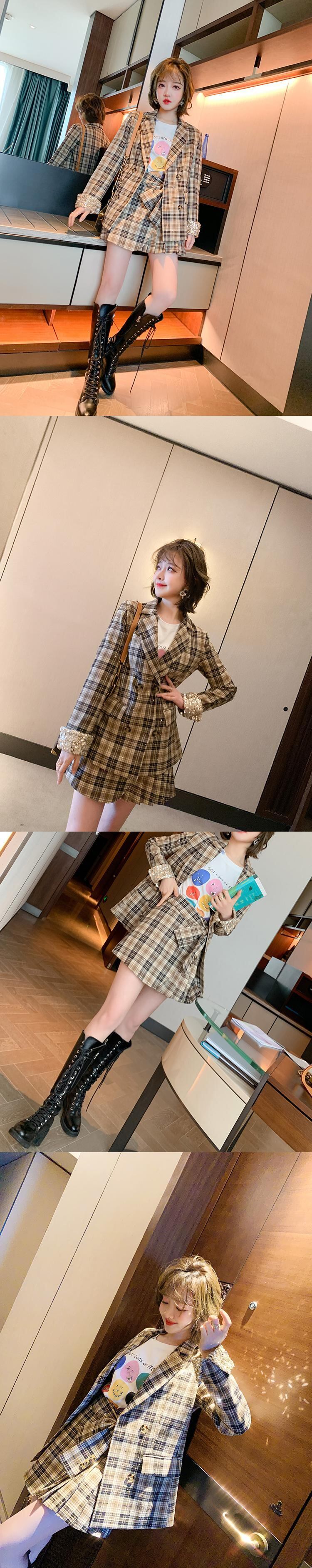 ダブルブレストブレザー プリーツスカート スプリング 春物 ハーネス ベルト MIUCO14590801468