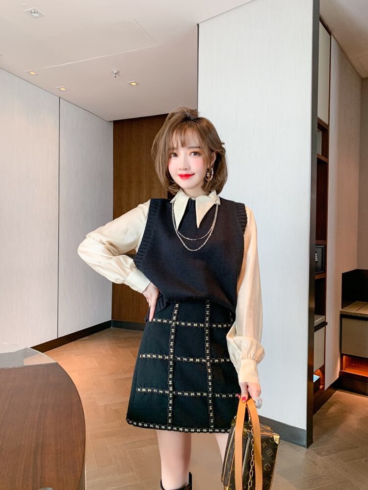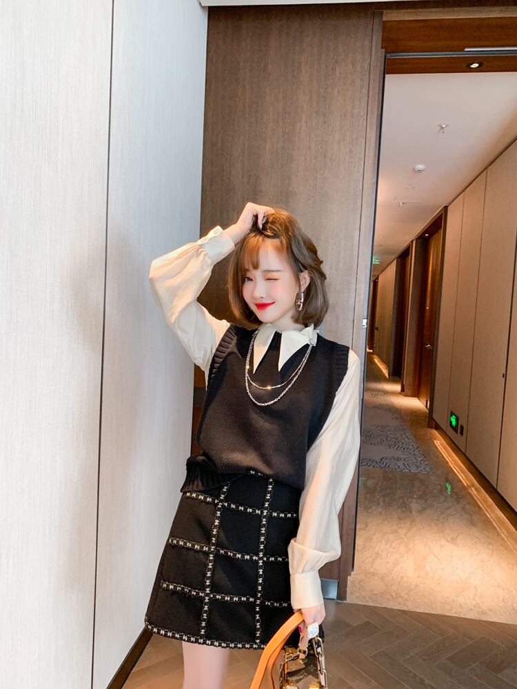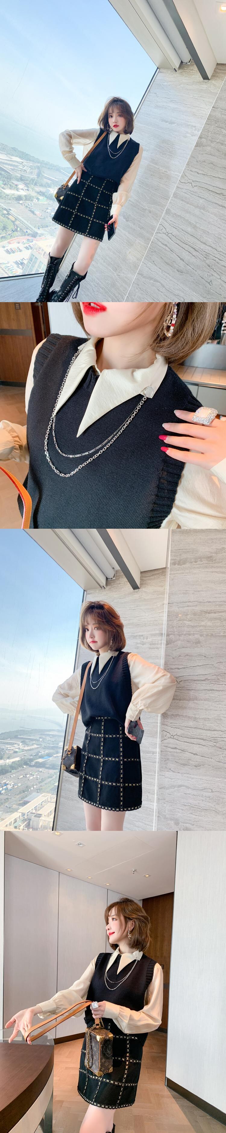 チェーン カラーシャツ ルーズニットスプリング 春物 MIUCO62125547191